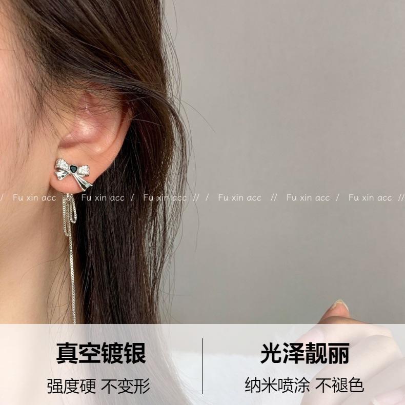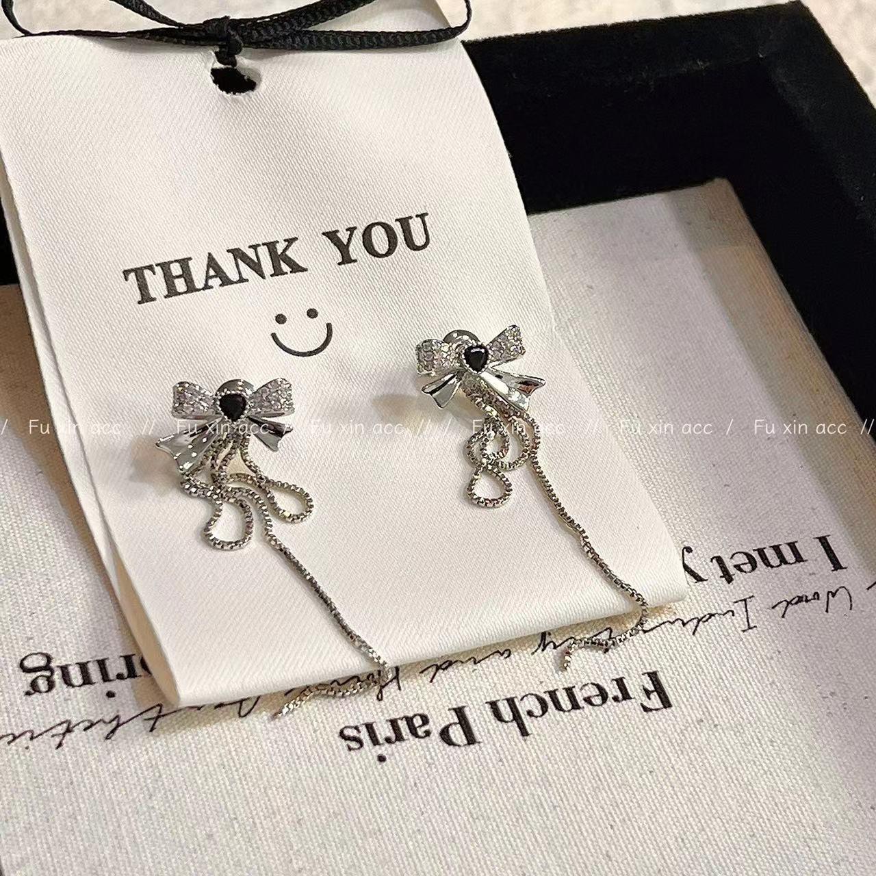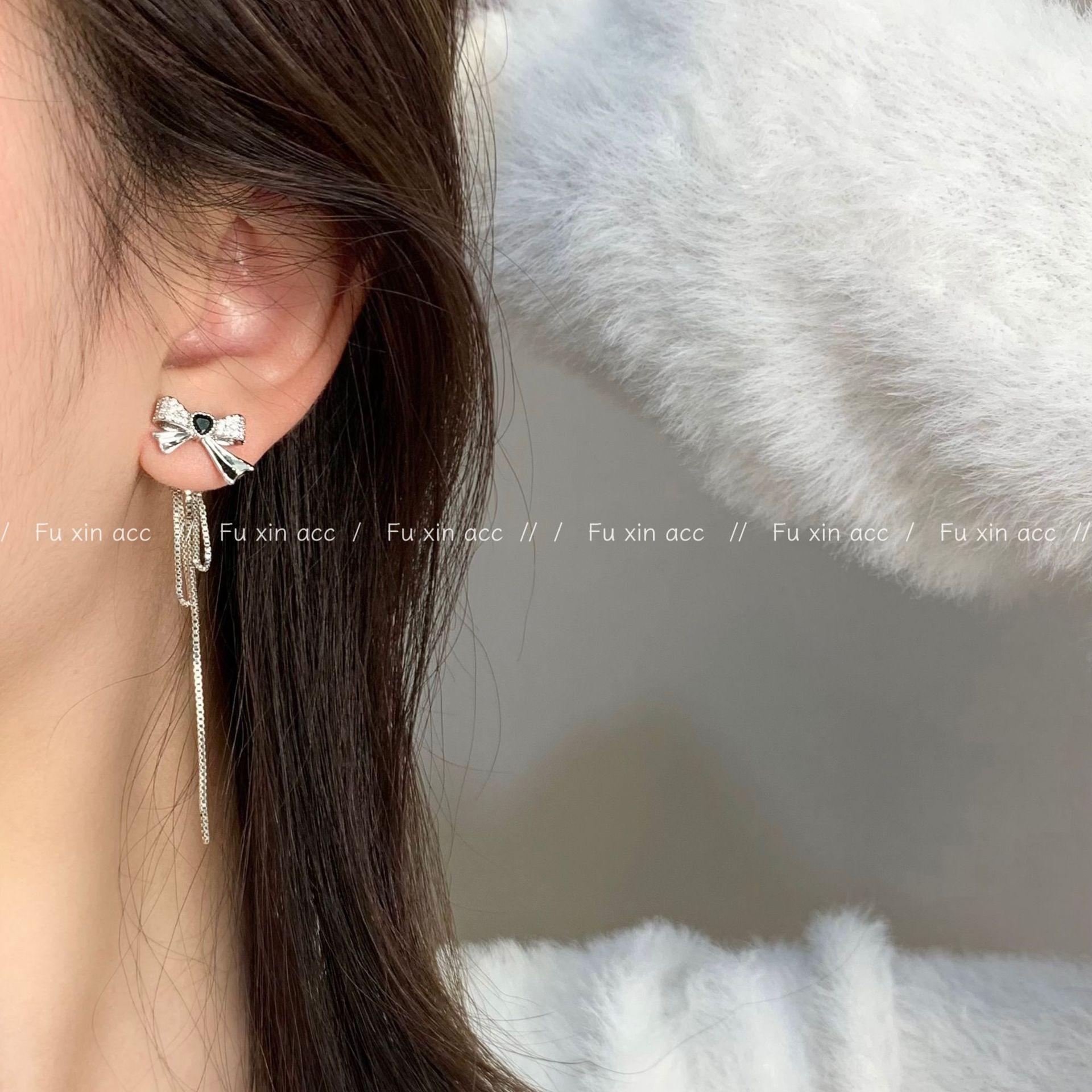 Pendientes largos con borlas y lazo de diamantes brillantes, con un dulce diseño de nicho, pendientes avanzados con agujeros para las orejas.