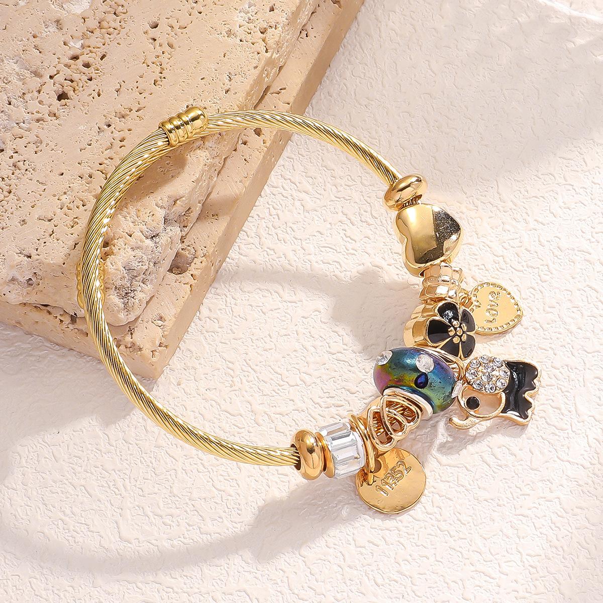 Pulsera Panjiaduo Europea y Americana Nuevo Tiempo Aleación Goteo de Aceite y Diamantes Pulsera Colgante Avanzado Pulsera Ajustable