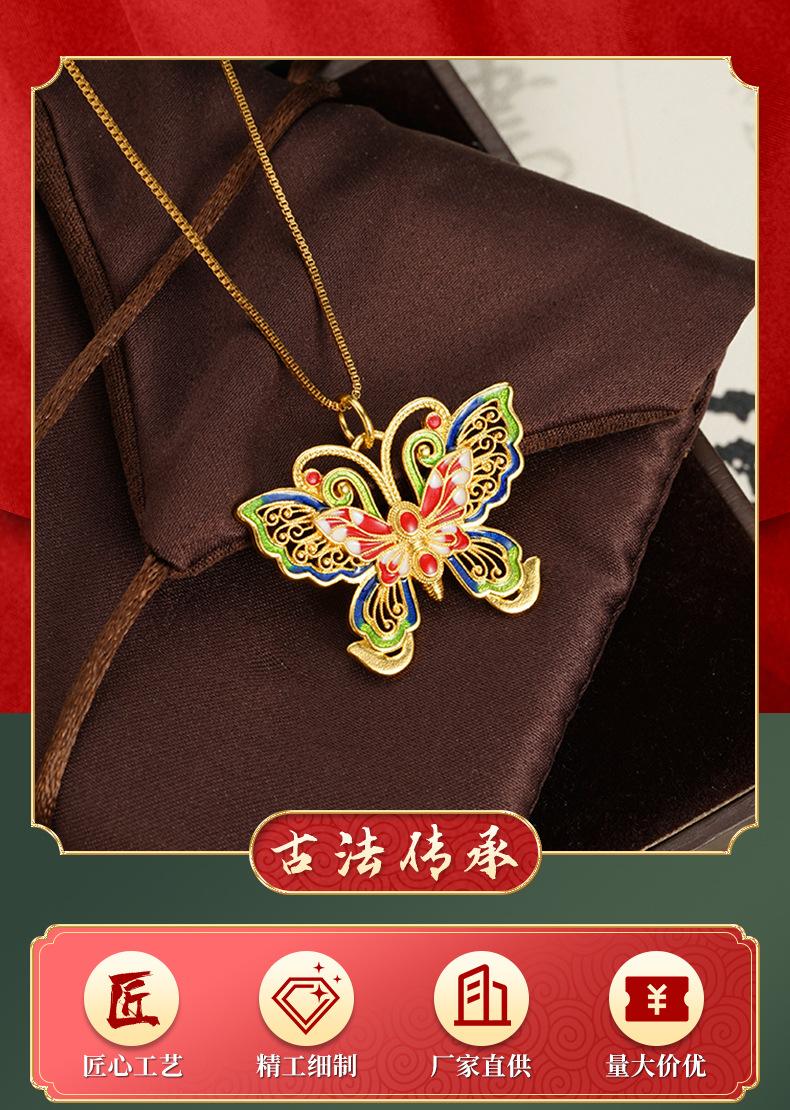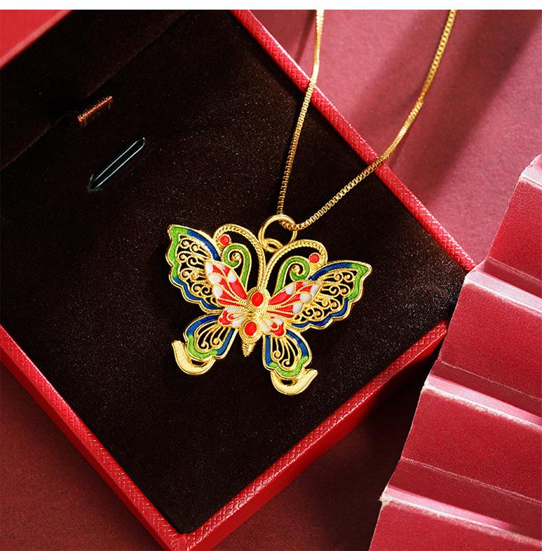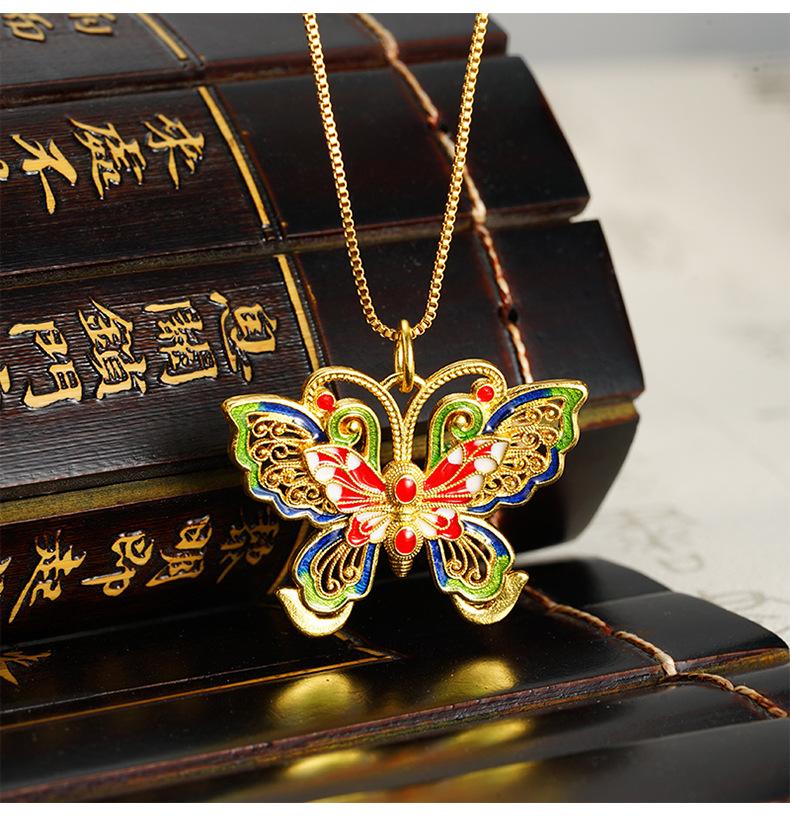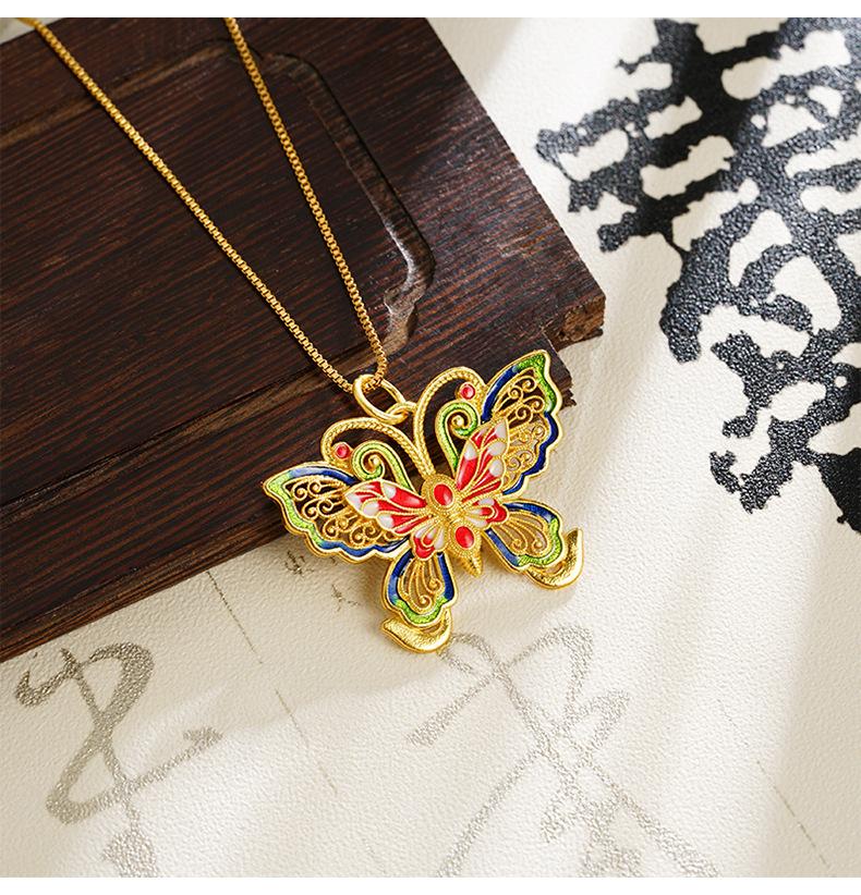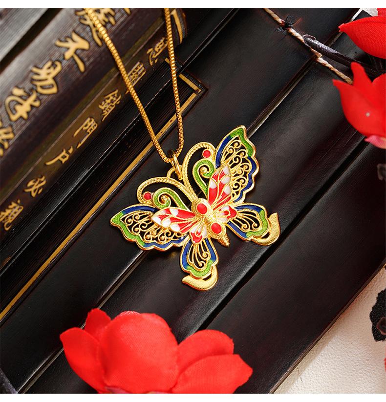Colgante de mariposa hueca de oro arena vietnamita con esmalte de color que combina con todo, estilo nacional, moda y suministro popular.