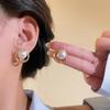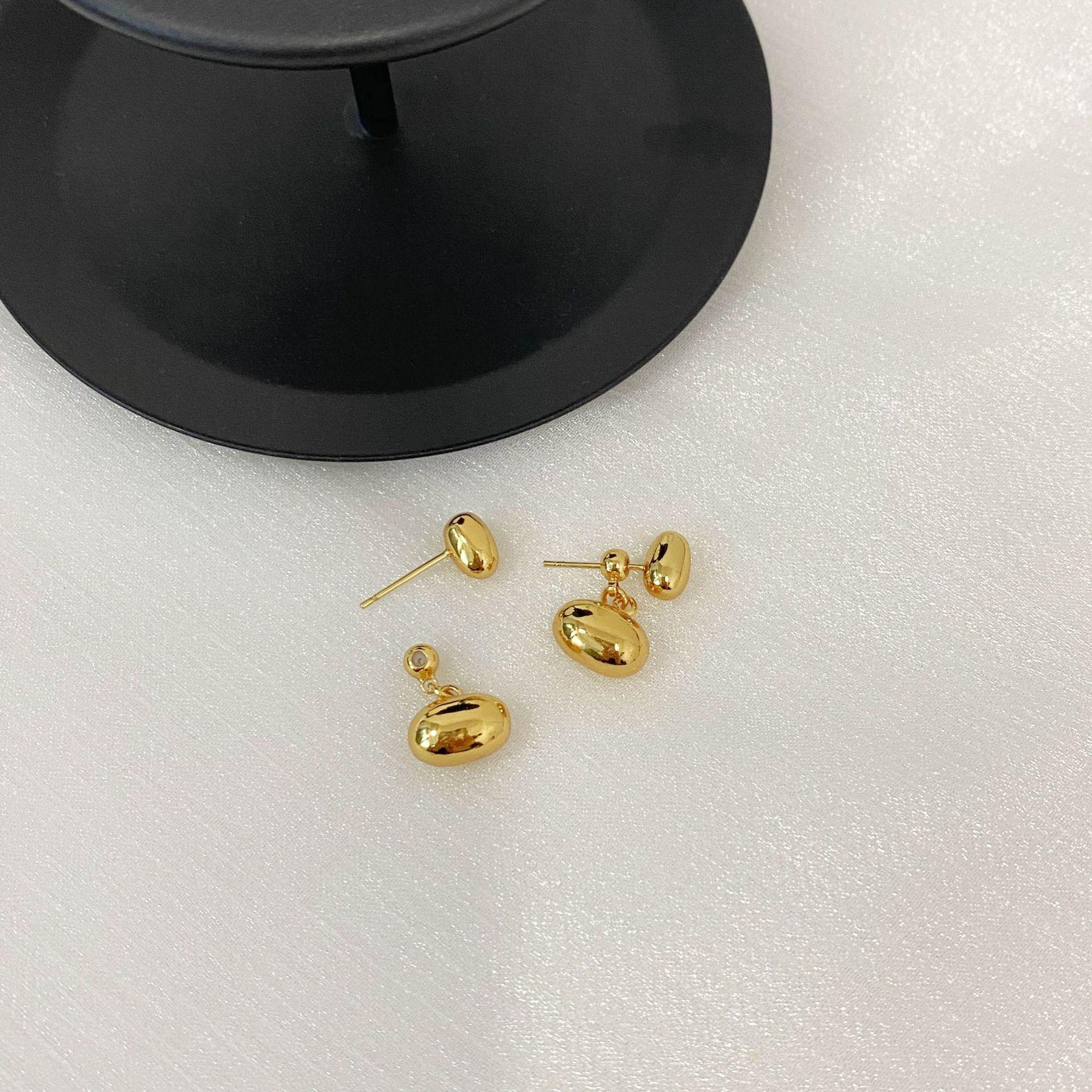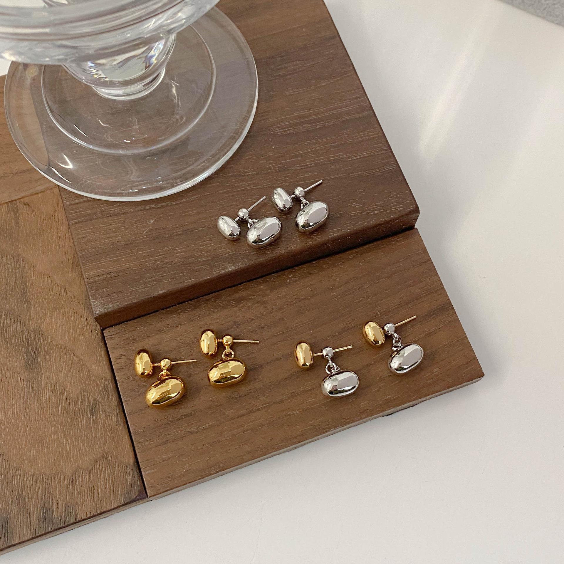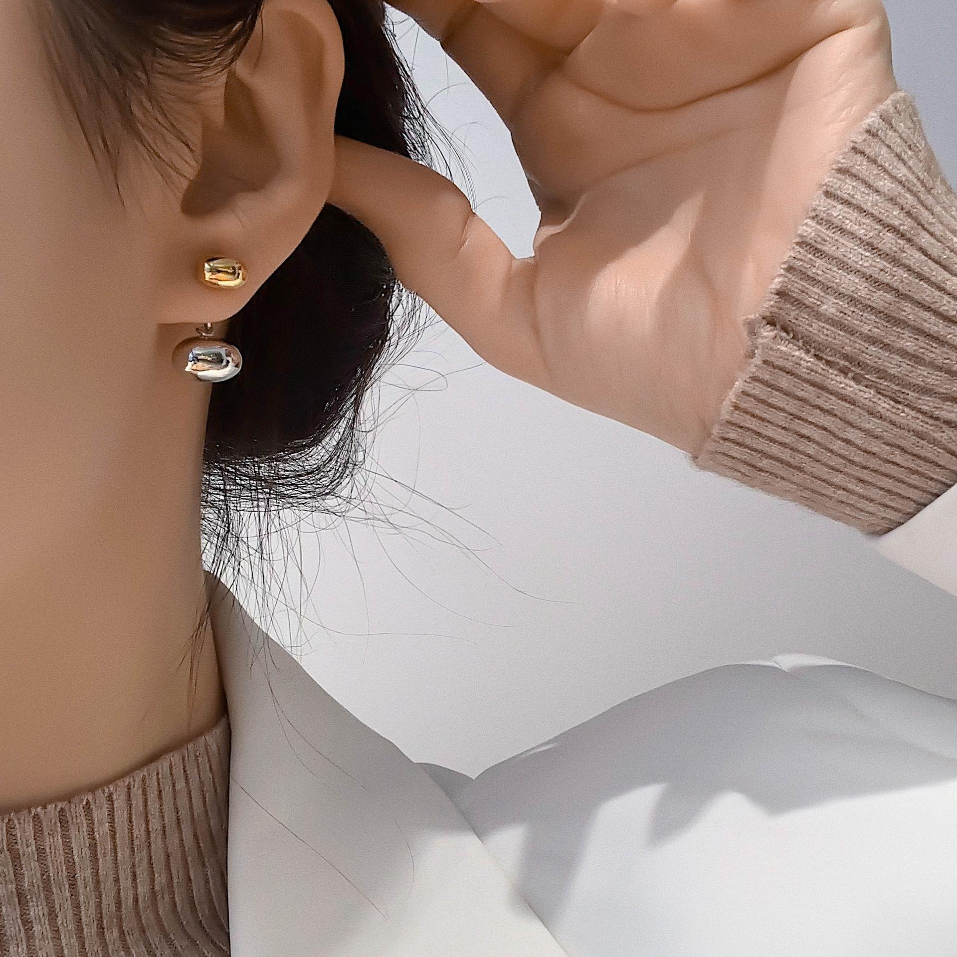 Elegantes Aretes Colgantes Traseros de Moda Fría de Lujo Ligero Diseño de Nicho Minimalista Ovalados de Metal con Forma de Frijol para Mujer