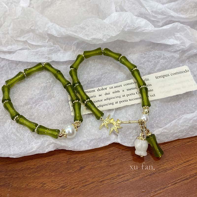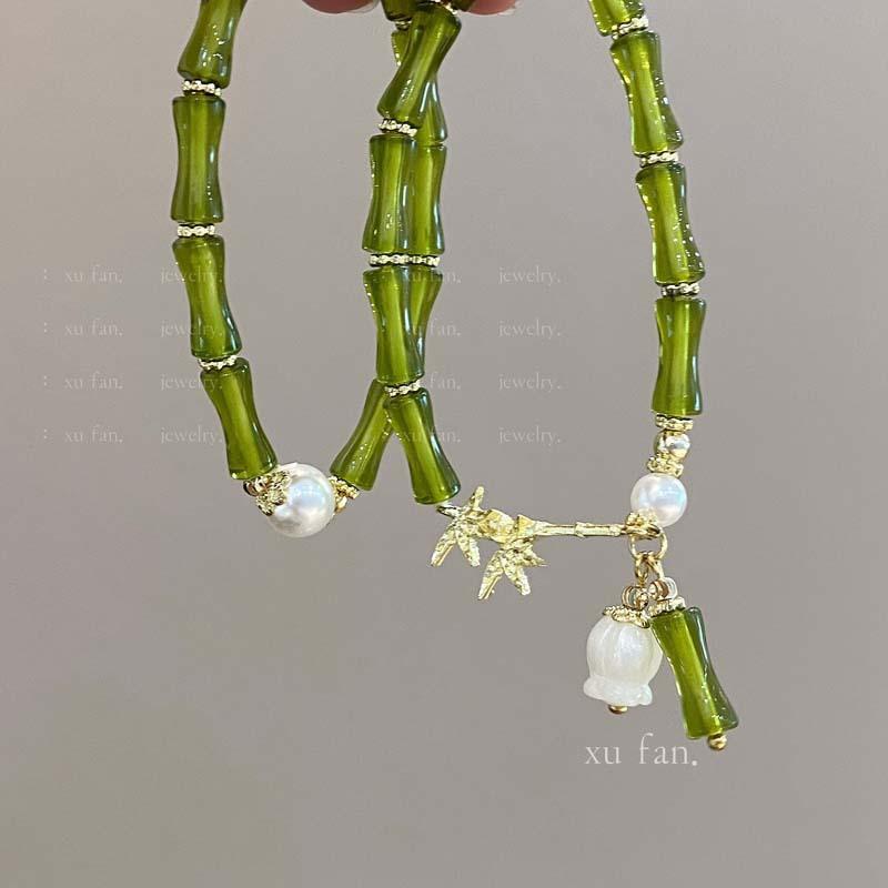 Compra Nueva pulsera de bambú azul, pulsera de camelia con perla de oliva, pulsera de alta calidad, pulsera antigua de nicho para mujer al por mayor en Joom.pro