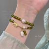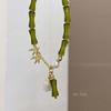 Nueva pulsera de bambú azul, pulsera de camelia con perla de oliva, pulsera de alta calidad, pulsera antigua de nicho para mujer