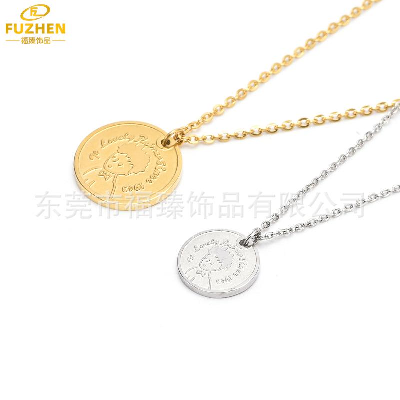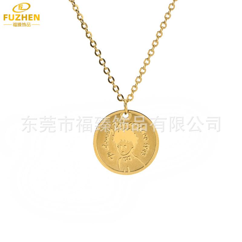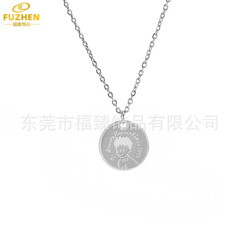 [Nombre] Marca de moda caricatura principito collar redondo de acero inoxidable simple acero de titanio redondo lindo interesante personalidad colgante para hombres y mujeres
