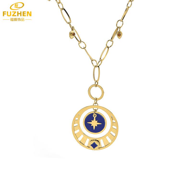 Collar redondo de acrílico con colgante de circonita de estrella de ocho puntas, cadena de diamantes de doble cara, cadena de joyería de acero de titanio resistente a la decoloración