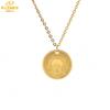 Collar de acero de titanio con flor de circón de círculo hueco, no se decolora, colgante chapado en oro, cadena redonda con patrón de letras, cadena de clavícula