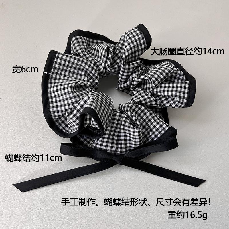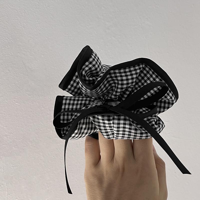 Retro Liga para el Cabello de Intestino Grueso Cuadro Blanco y Negro Lazo Liga para el Cabello de Cola de Caballo Tocado de Tela de Alta Gama