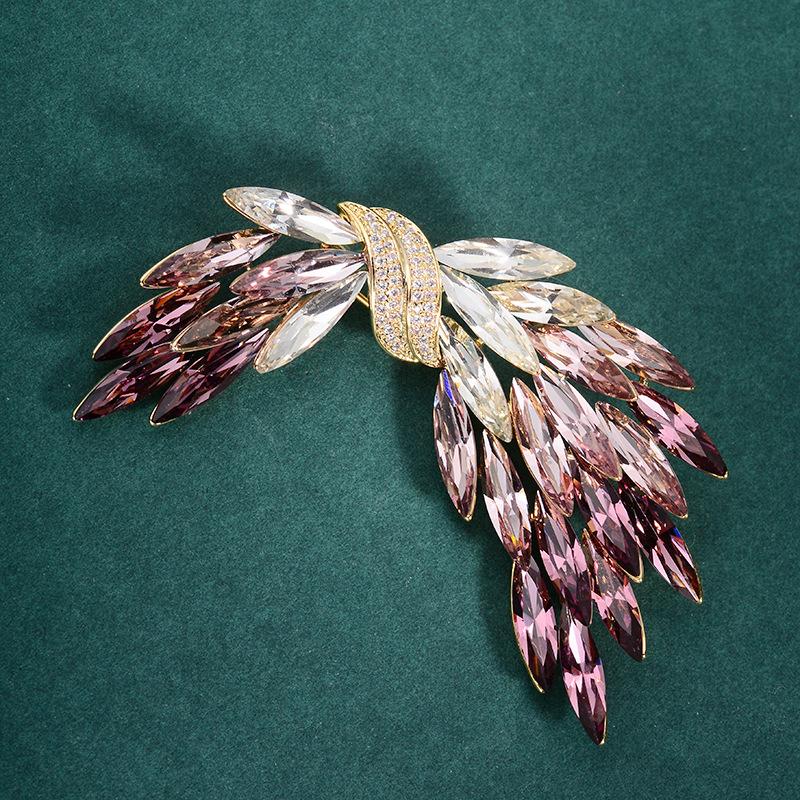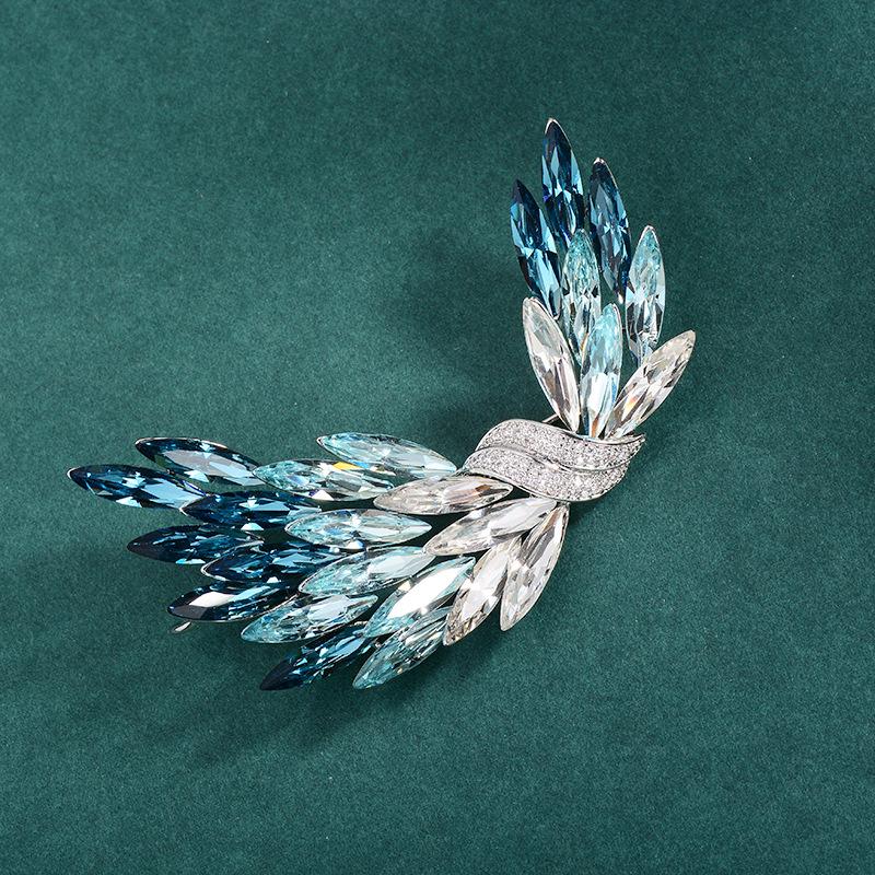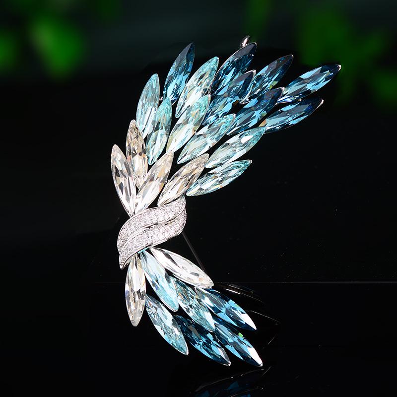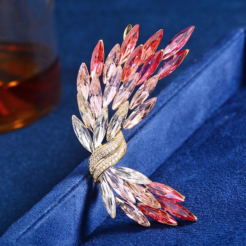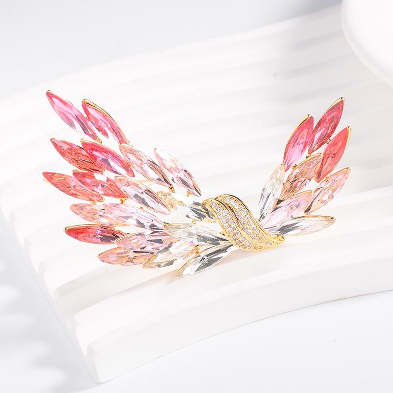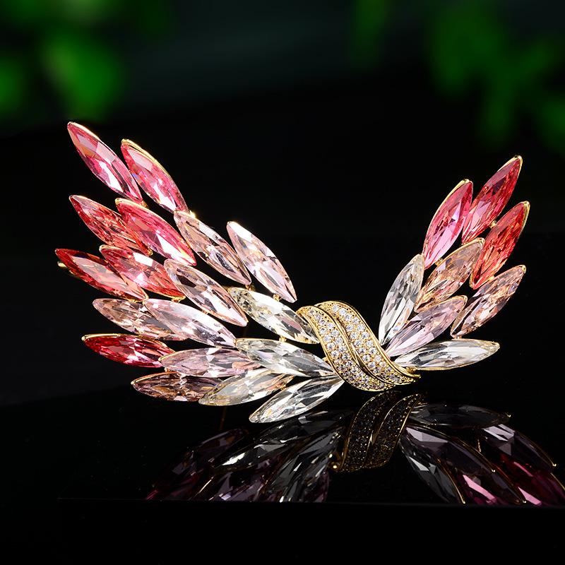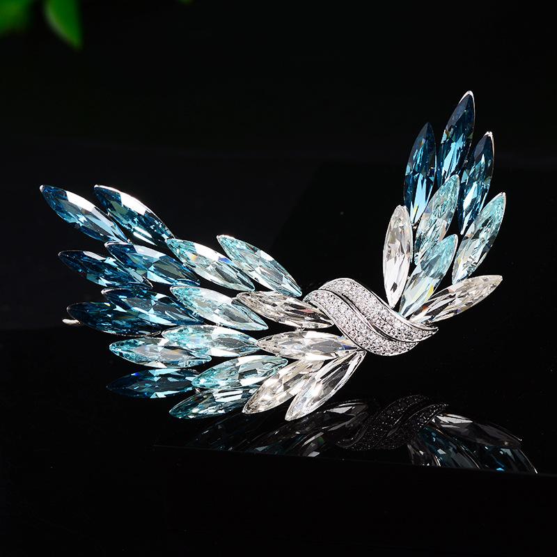 Broche de alas nuevo para mujer, con circonitas de imitación de cristal, ramillete de trigo, estilo europeo y americano, elegante alfiler para traje de abrigo de lujo.