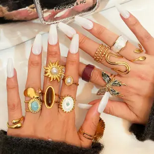 Colección de Anillos Geométricos Avanzados Retro Europeos y Americanos de Acero Inoxidable Transfronterizo Anillo para Dedo Anillo para Dedo Índice Juego de Accesorios de Joyería de Lujo Ligero