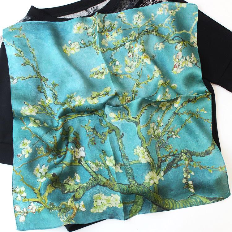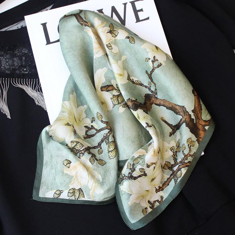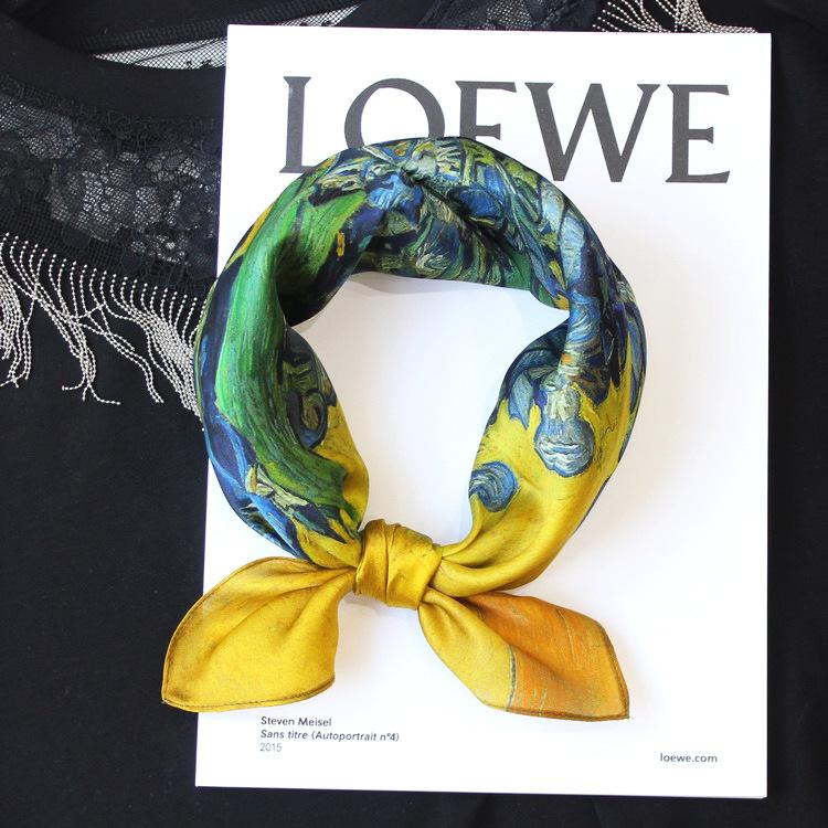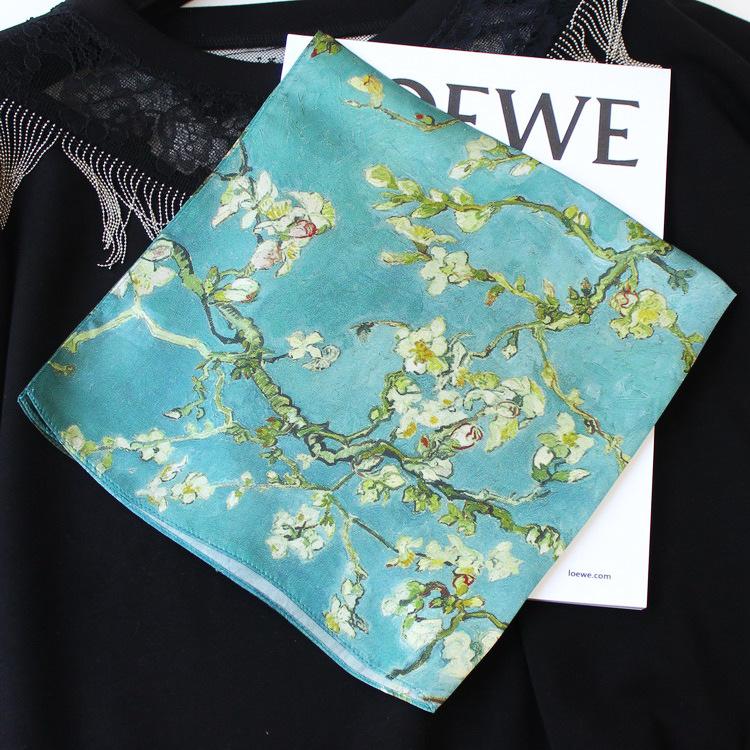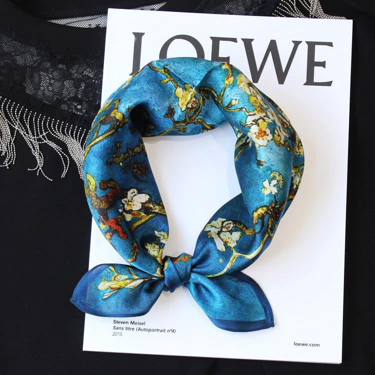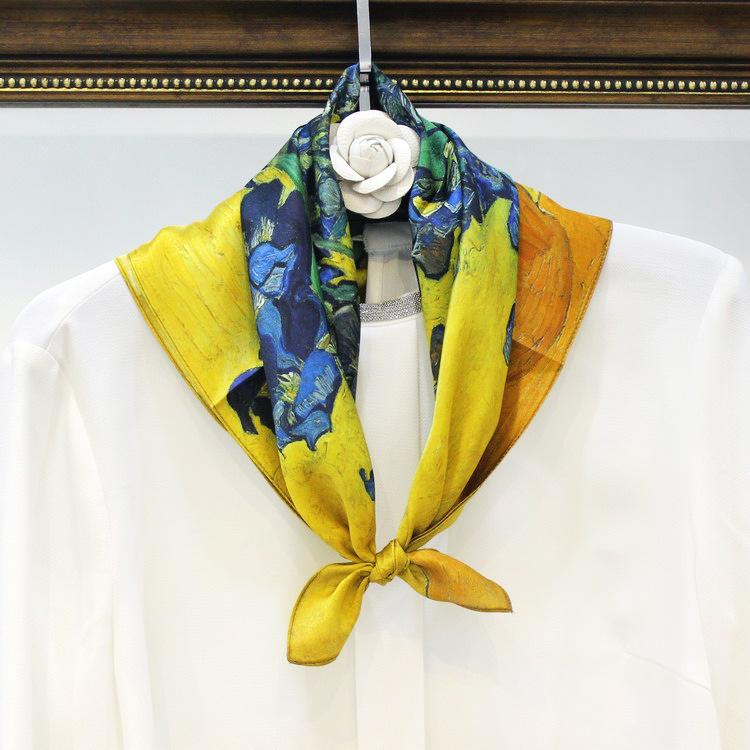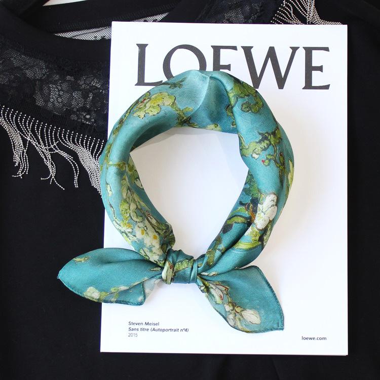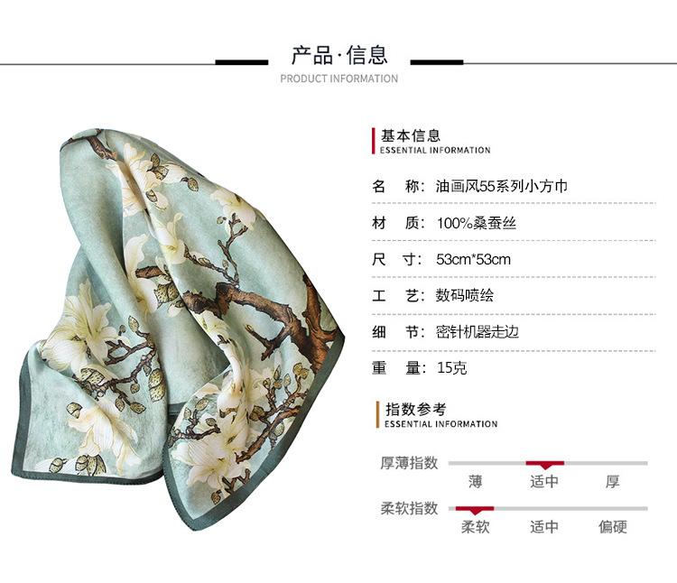 Nueva y elegante bufanda cuadrada pequeña de seda con estilo de pintura al óleo, bufanda de seda que combina con todo, bufanda de seda morera, bufanda para mujer, bufanda al por mayor.