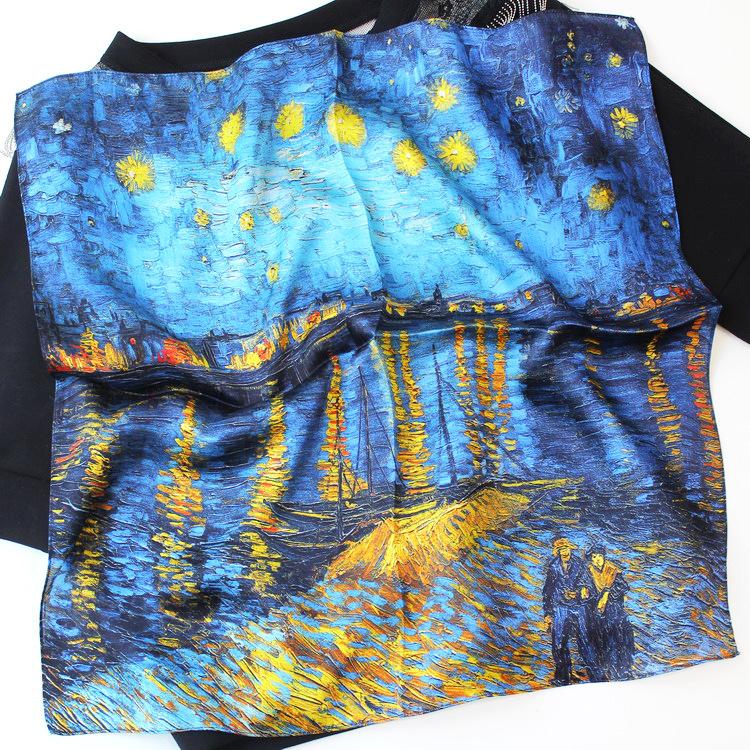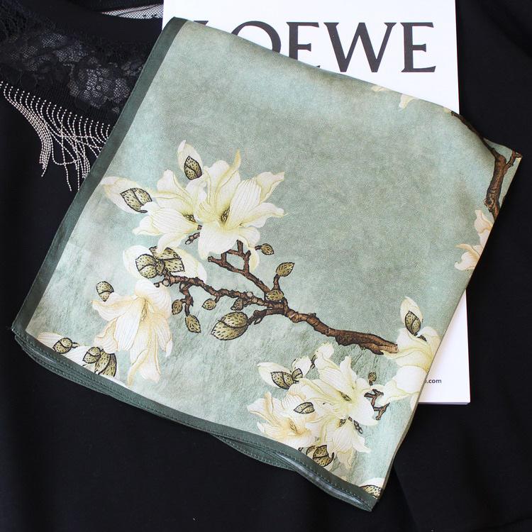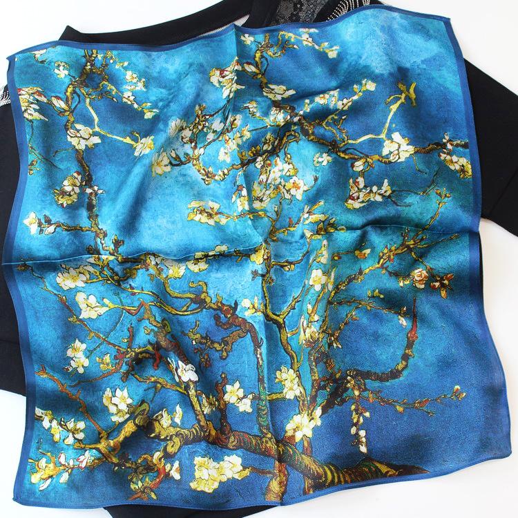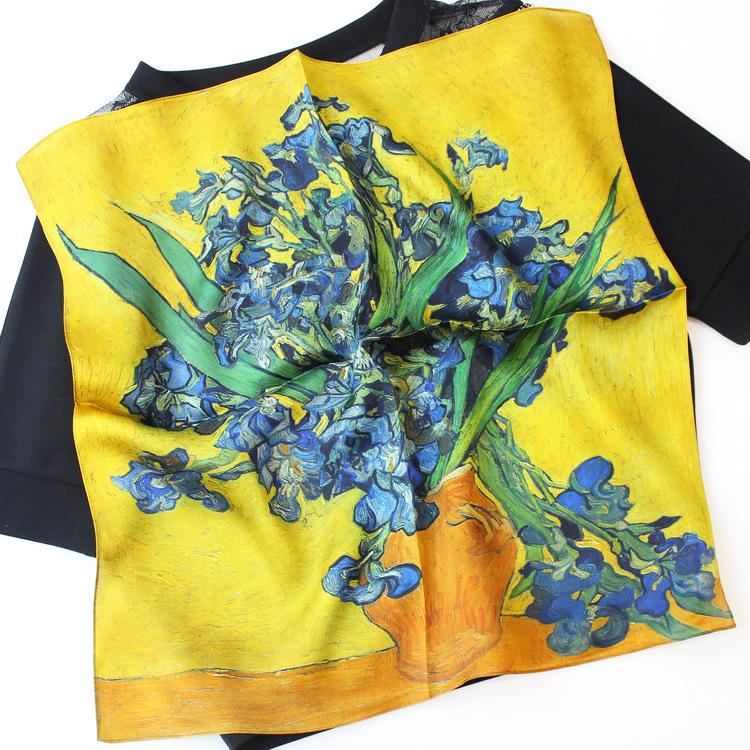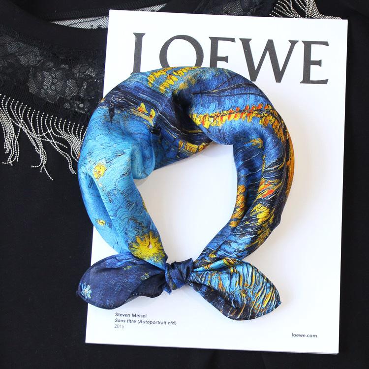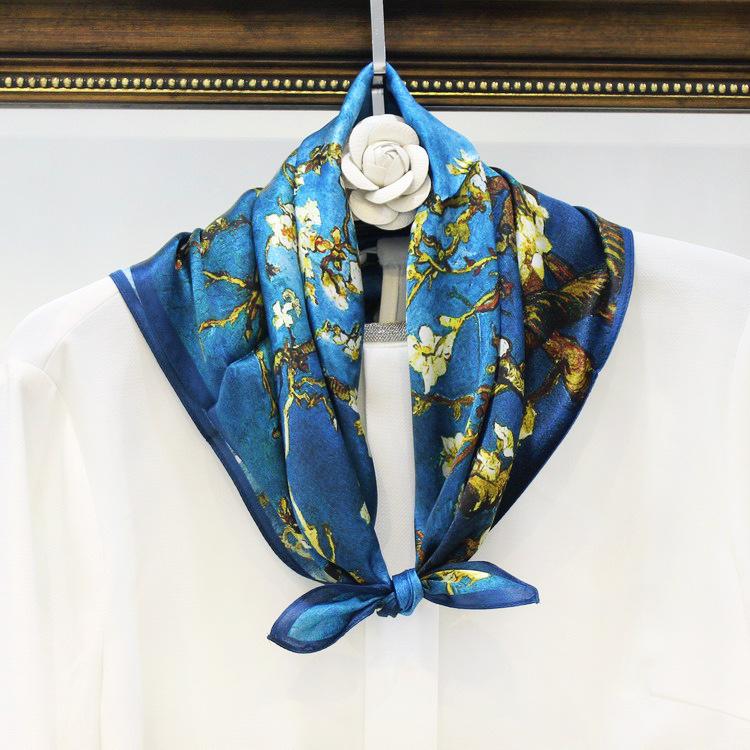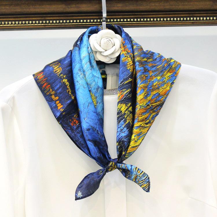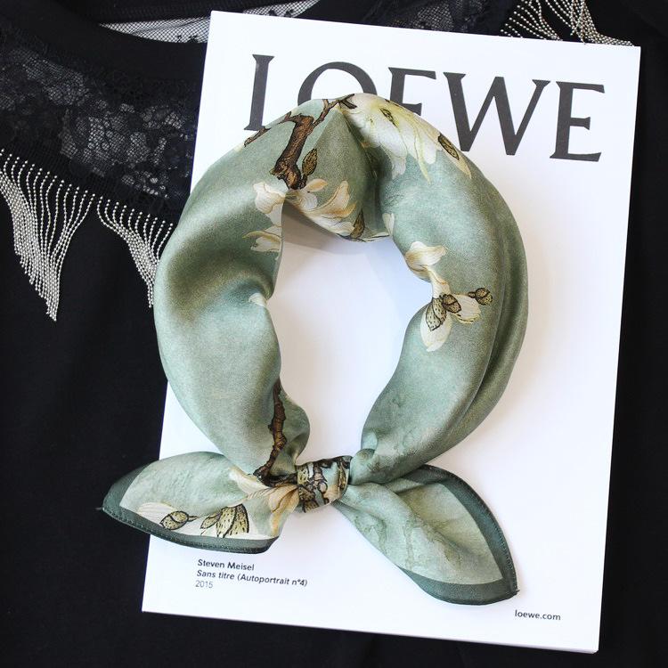 Nueva y elegante bufanda cuadrada pequeña de seda con estilo de pintura al óleo, bufanda de seda que combina con todo, bufanda de seda morera, bufanda para mujer, bufanda al por mayor.