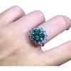 Anillo de moissanita azul y verde de simulación popular en vivo para mujer, de lujo, lleno de diamantes de 3 quilates, anillo abierto de diamantes con ocho corazones y ocho flechas.