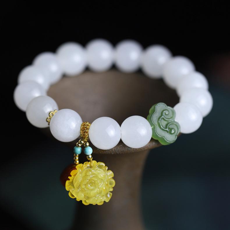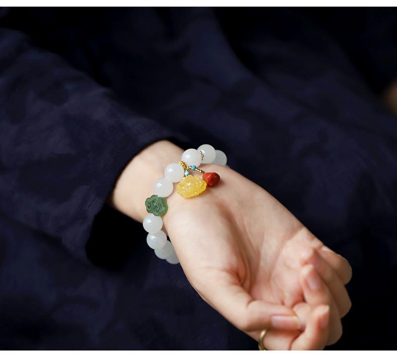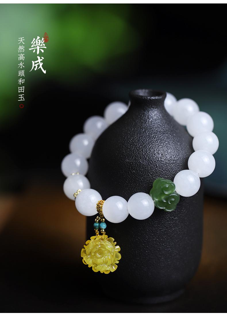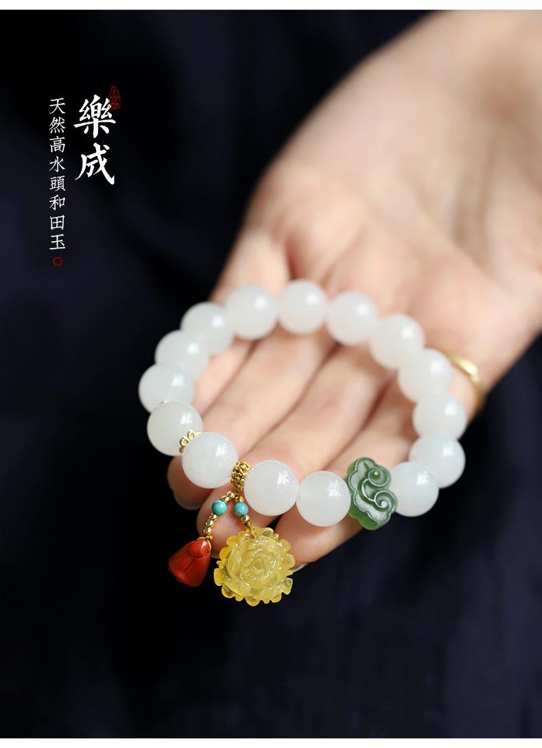 Pulsera de jade Hetian de alta cabeza de agua pulsera de cuentas de Buda de cera de abeja joyería femenina rojo sur pulsera simple al por mayor