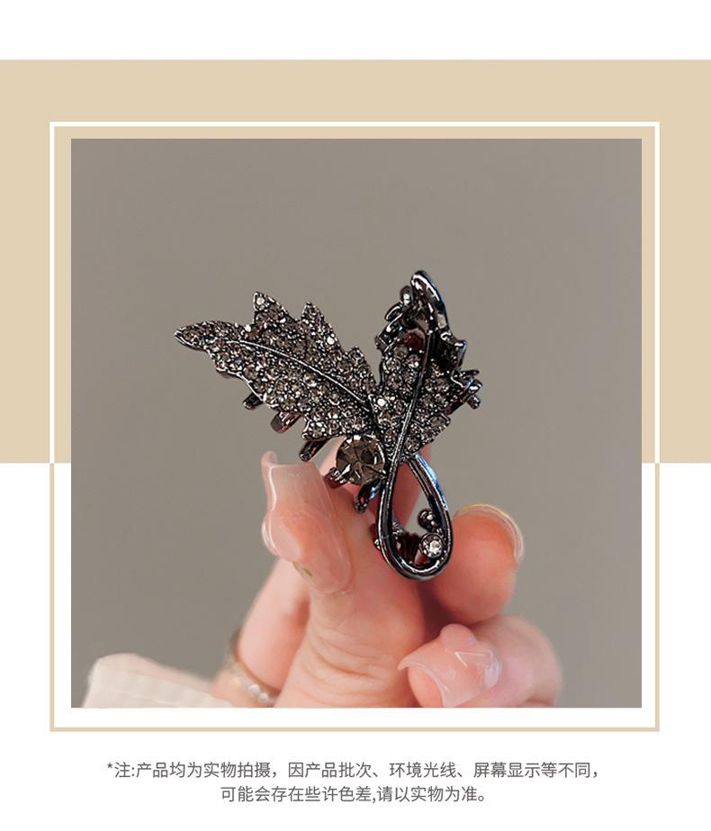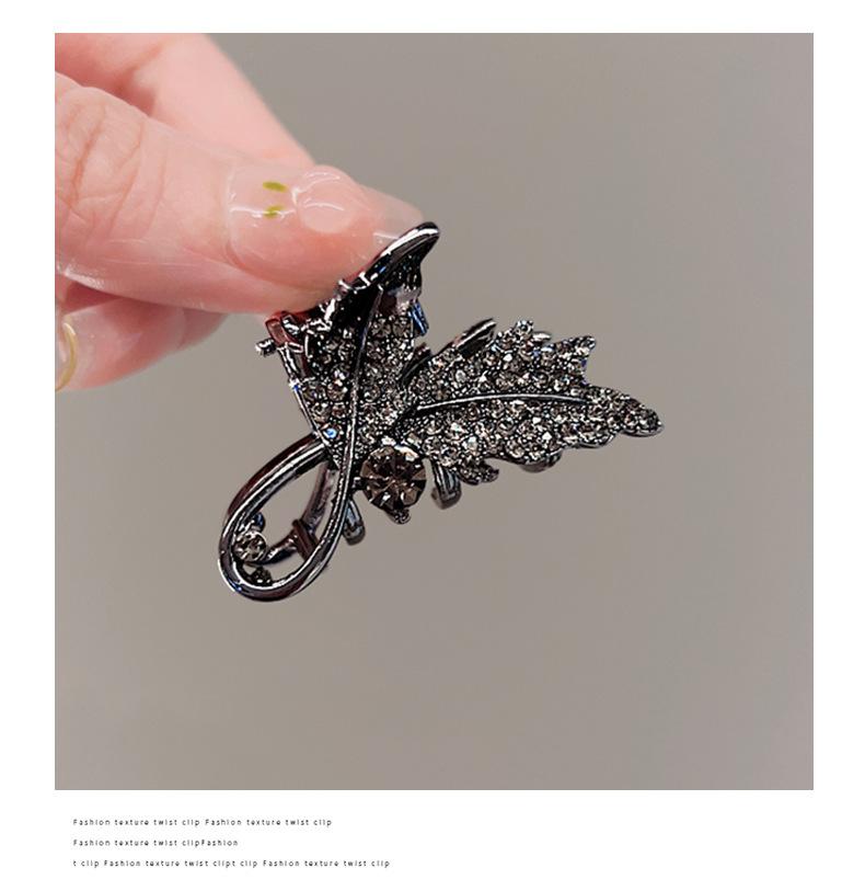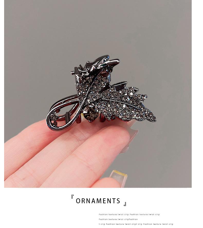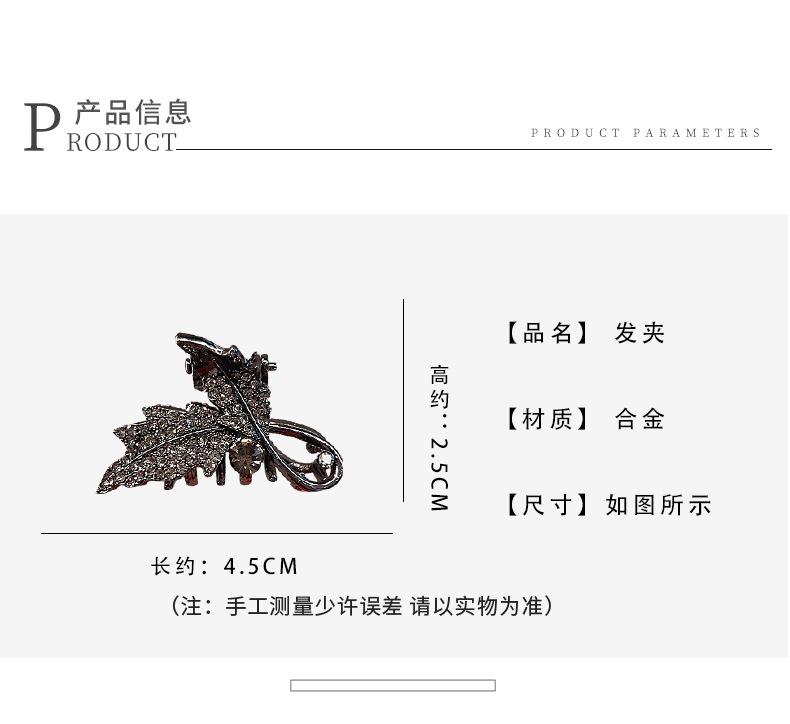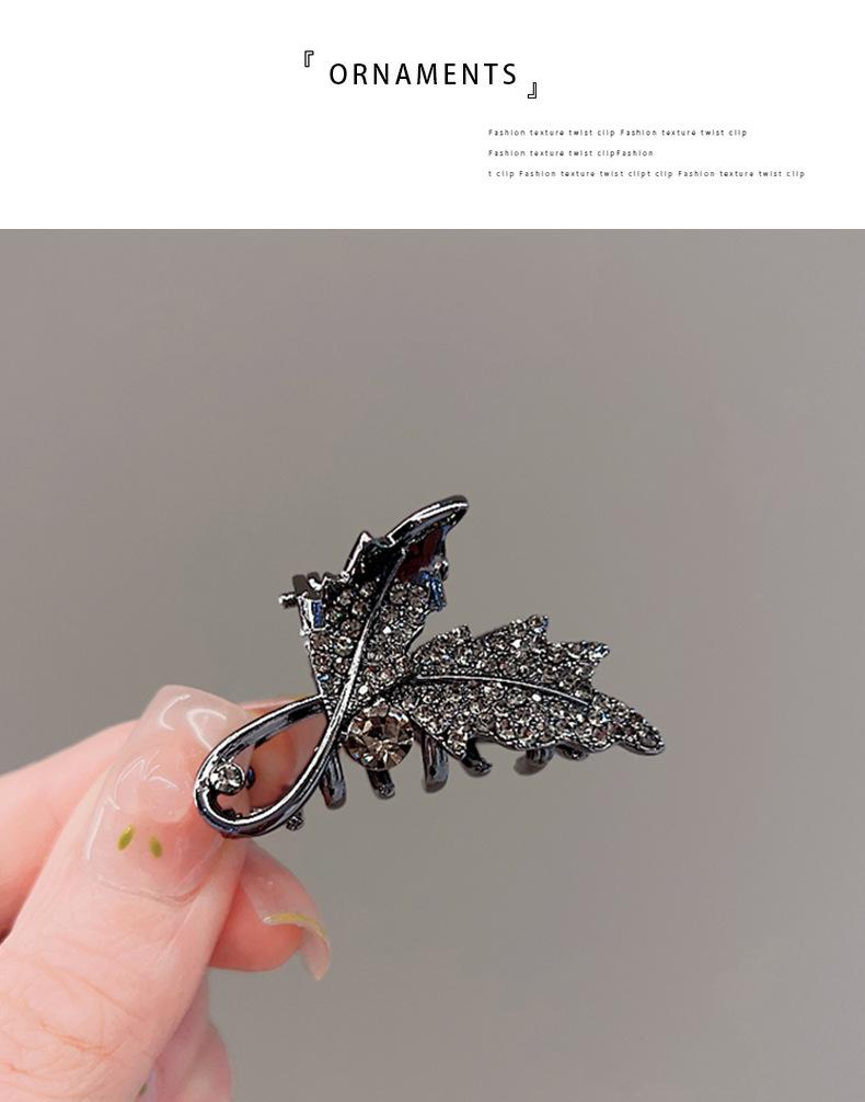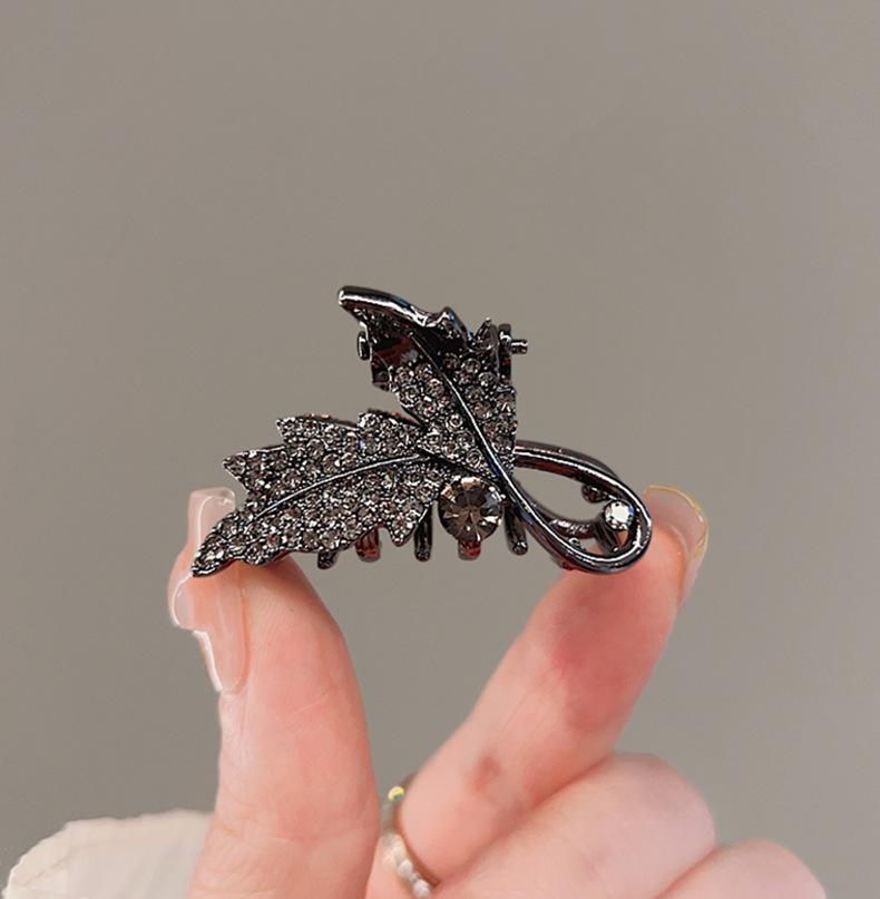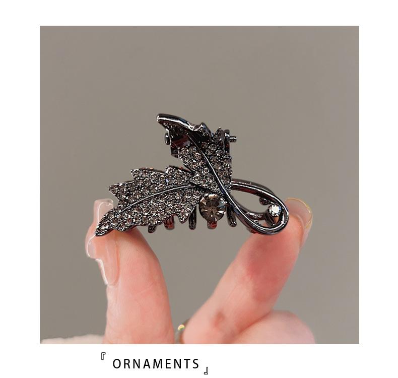 Clip de diamantes de imitación Black Leaf para el verano de 2023, nuevo accesorio para el cabello con lazo en la parte posterior, tamaño pequeño, horquilla lateral, horquilla de celebridad de Internet.