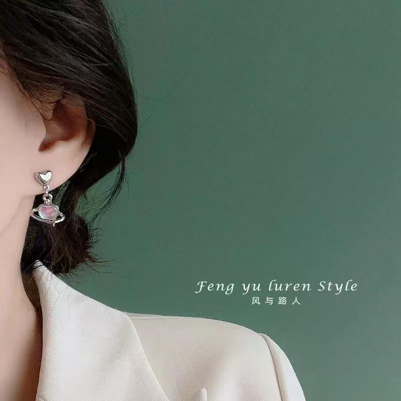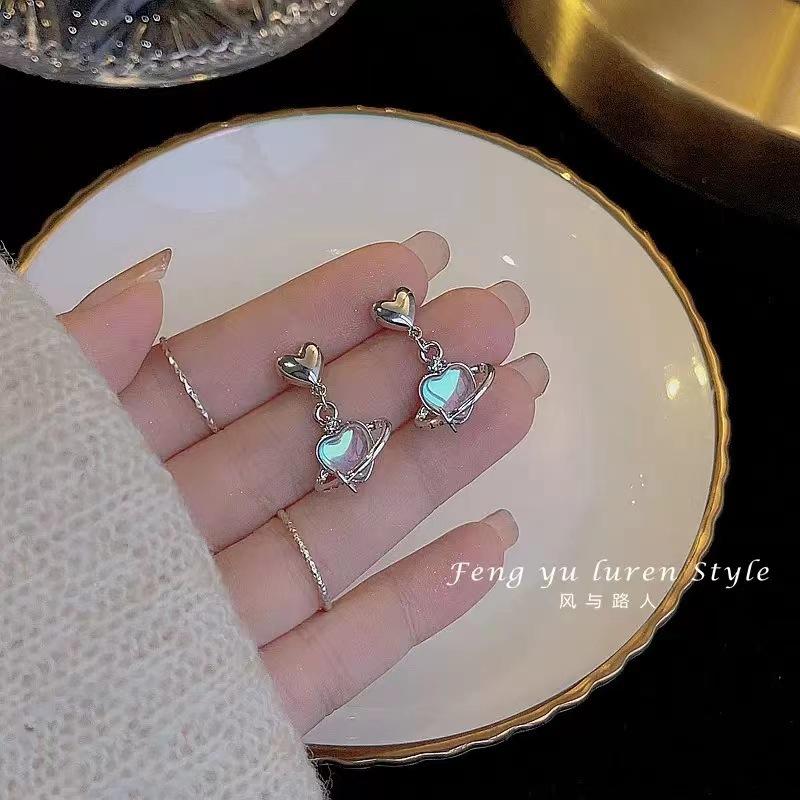 Pendientes de botón con láser de estilo dulce y fresco, exquisitos y sencillos, de diseño de nicho, versátiles y de alta calidad, joyería para las orejas.