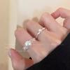 Anillo abierto de circonita y perla para mujer, nuevo anillo de dedo elegante de estilo francés 2024, diseño de nicho, anillo de celebridades de Internet.
