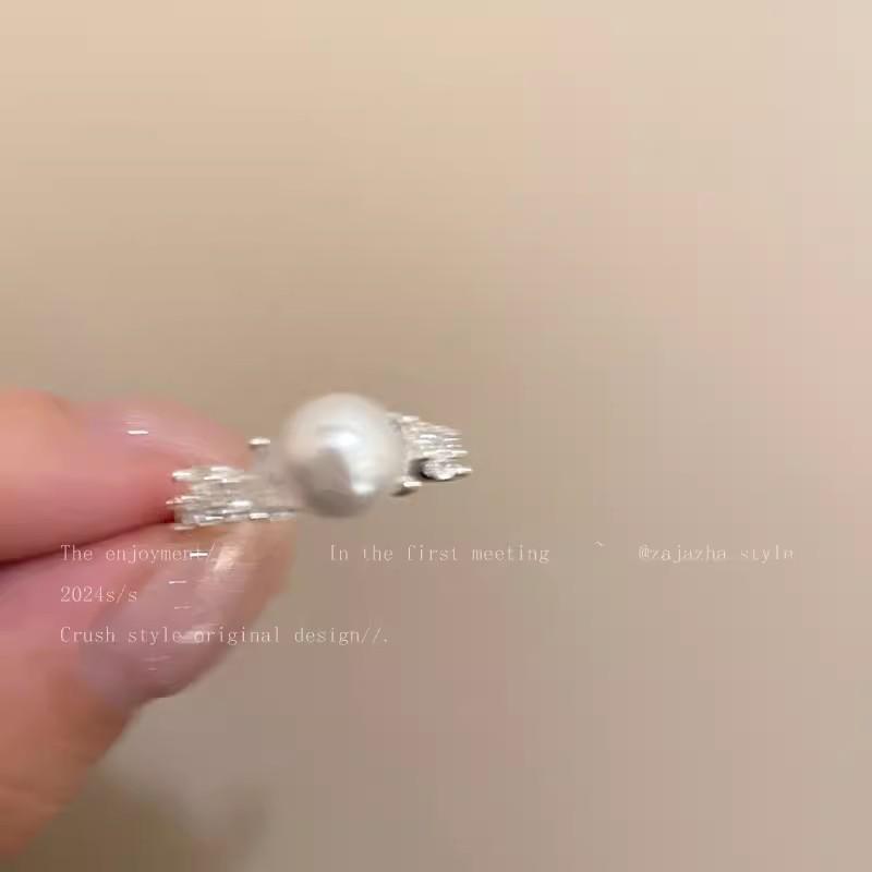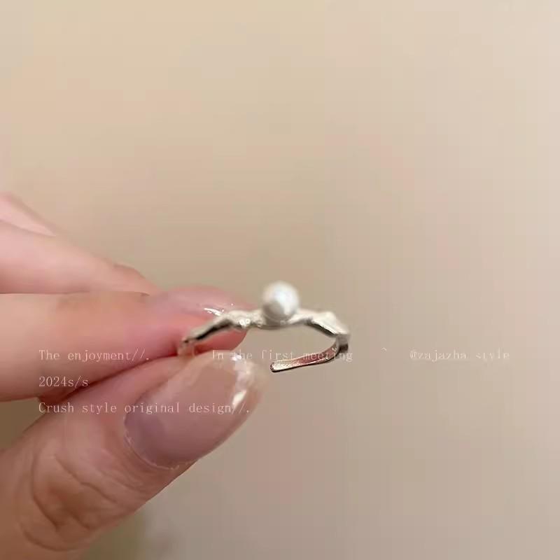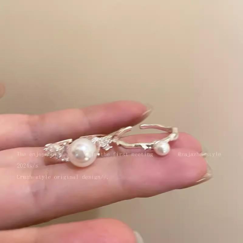 Compra Anillo abierto de circonita y perla para mujer, nuevo anillo de dedo elegante de estilo francés 2024, diseño de nicho, anillo de celebridades de Internet. al por mayor en Joom.pro