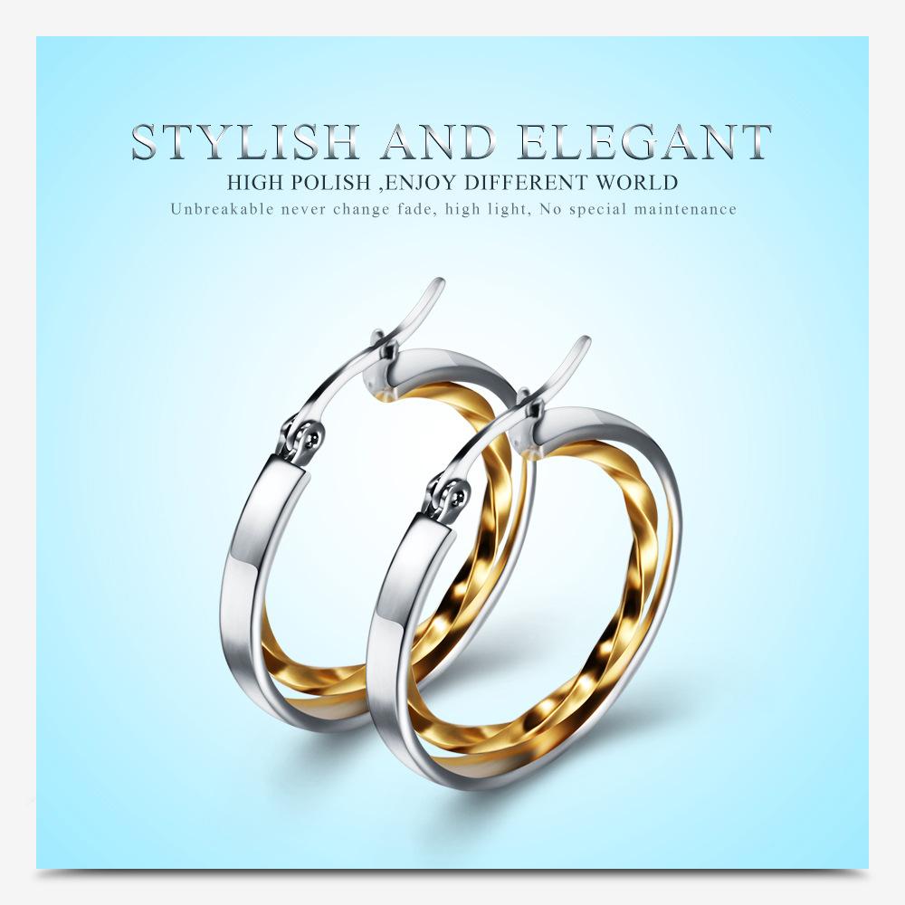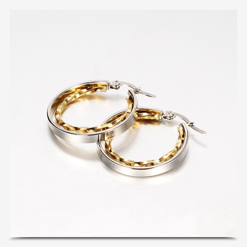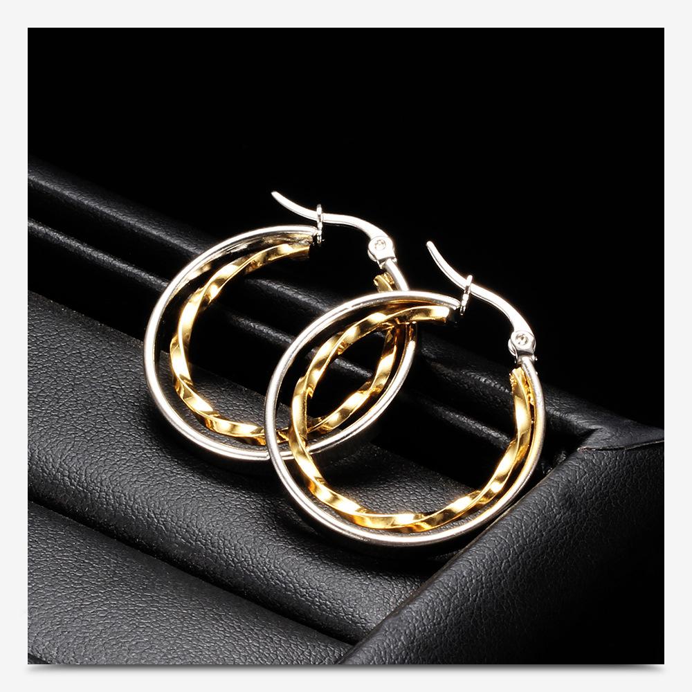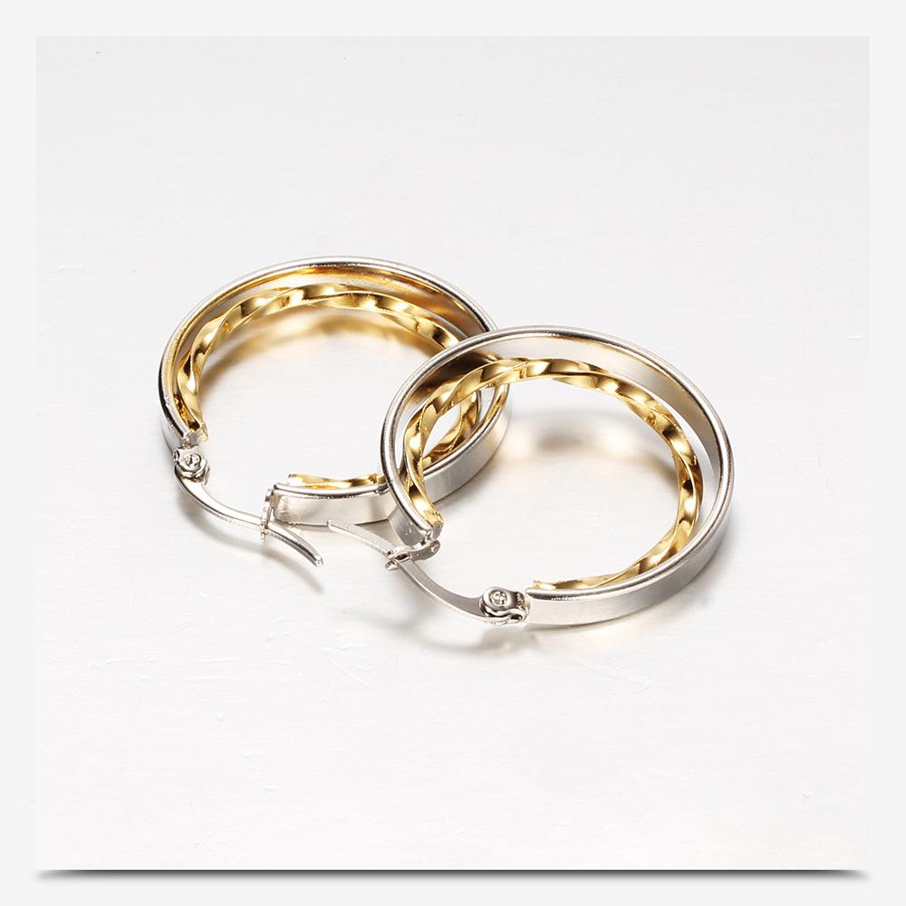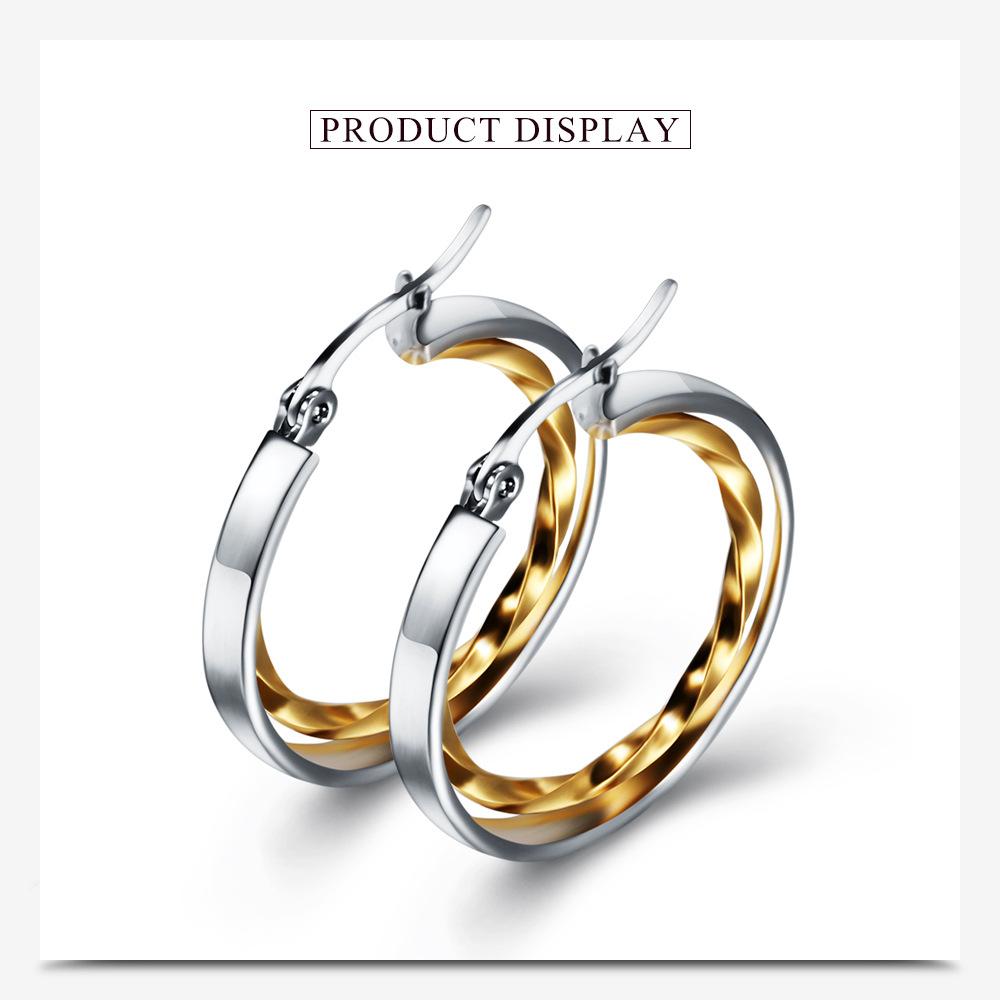 Aretes de Acero Inoxidable 316L Europeos y Americanos Transfronterizos Nuevos 28mm Redondos Calados Doble Capa Acero Titanio Aretes Personalizados Venta al Mayoreo para Mujeres