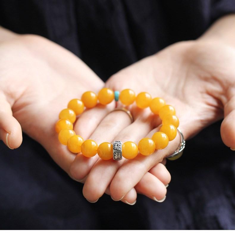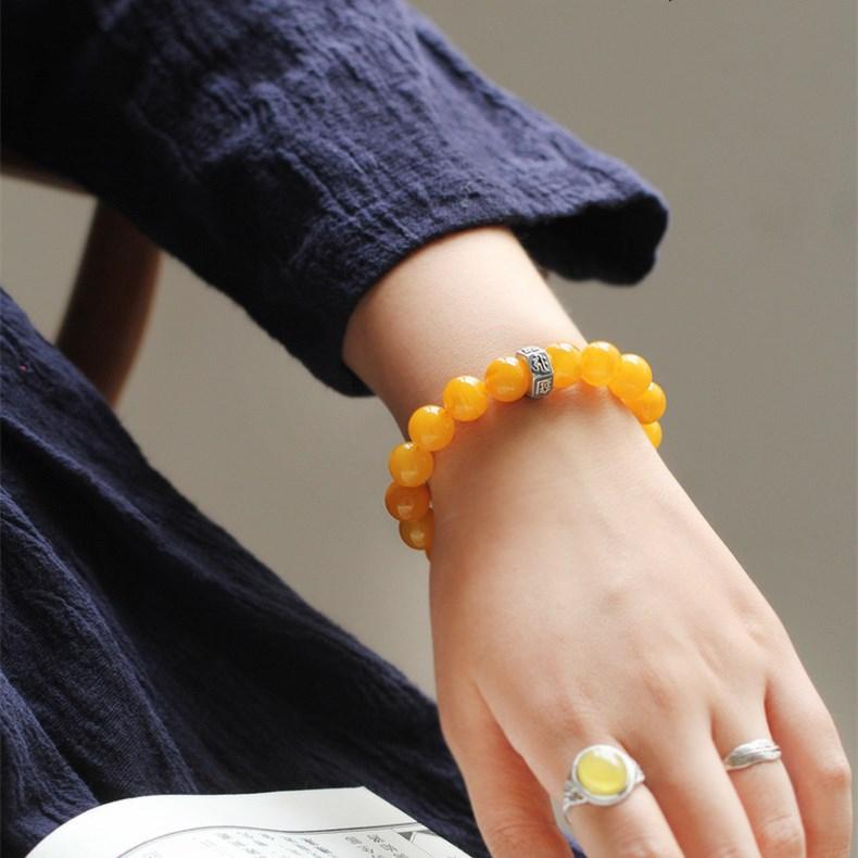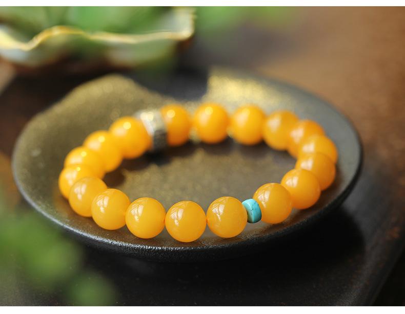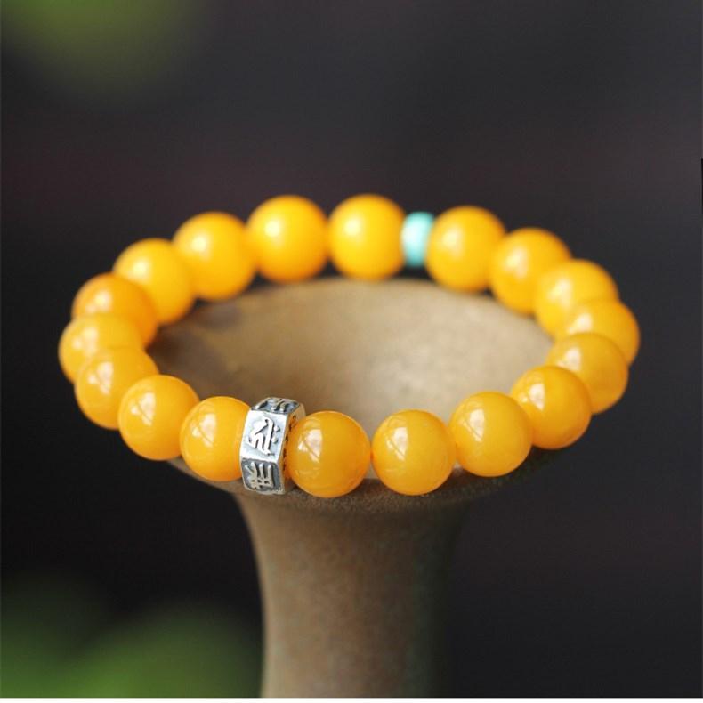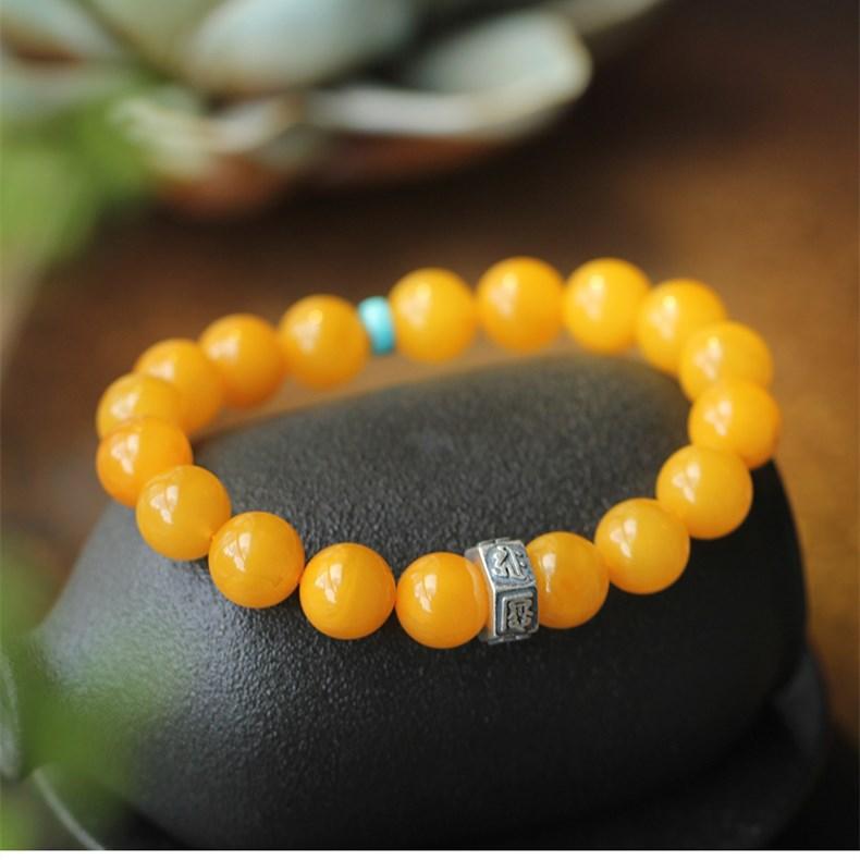 Pulsera de cuentas de cera de abeja amarilla aceite de pollo de 10 mm de un solo círculo DIY para hombres y mujeres este año del buey pulsera cuentas joyería