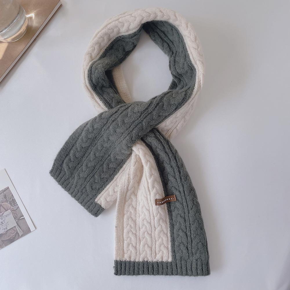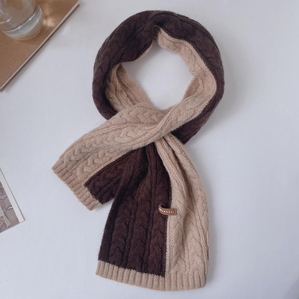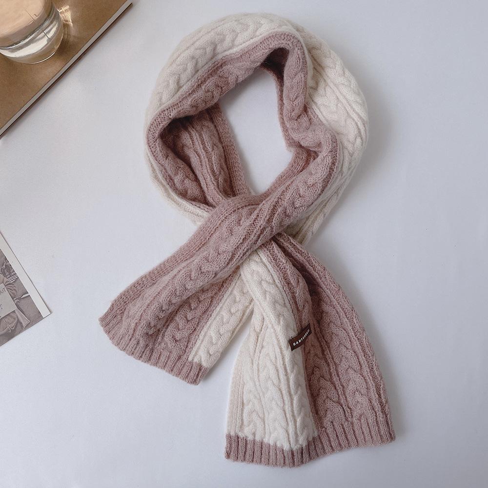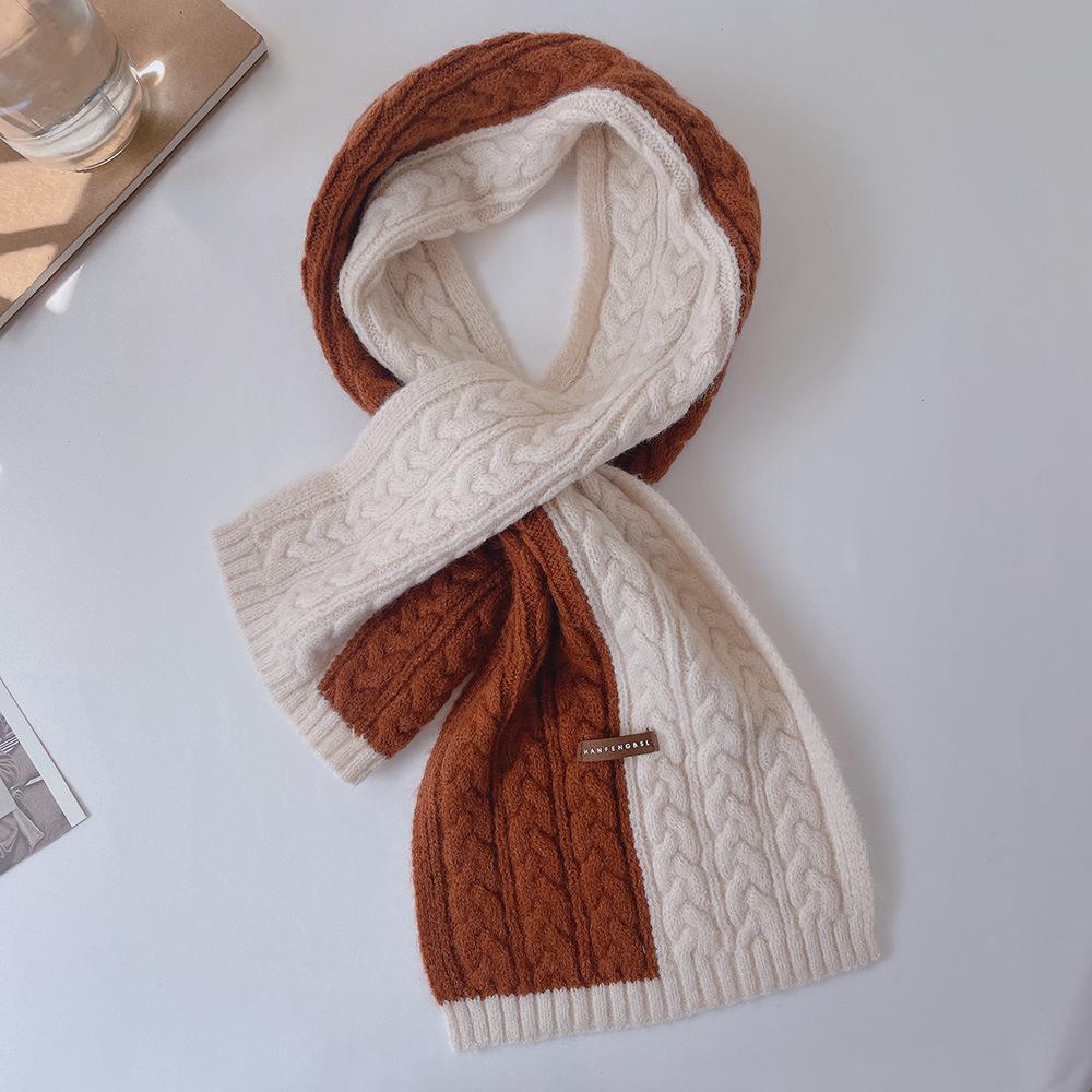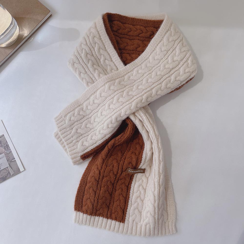 Bufanda tejida cruzada retorcida, estilo universitario británico de color contrastante, sin decoración recargada y llamativa, cómoda al tacto, duradera y que no se decolora, color cálido, elegante y discreta, un artículo de moda imprescindible~