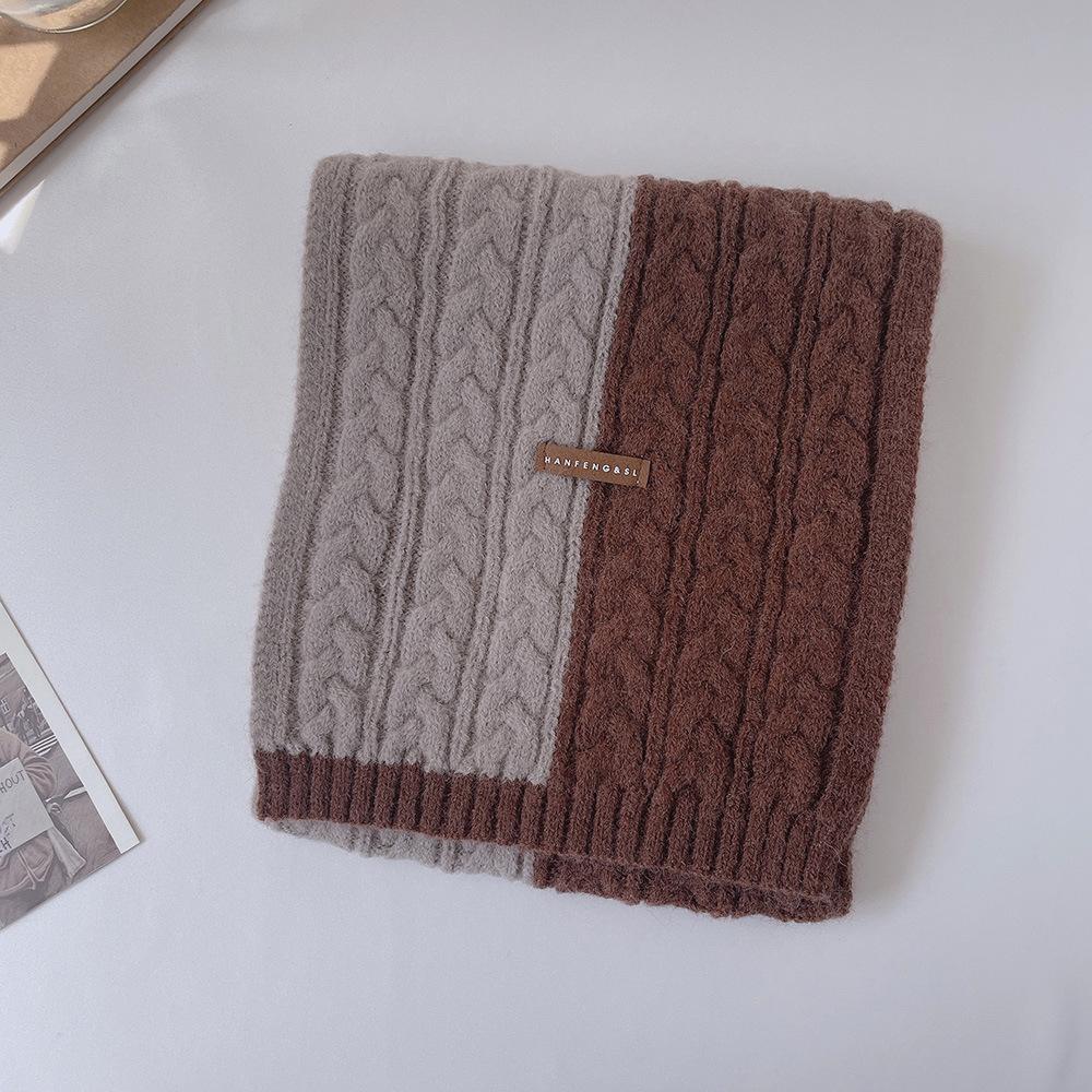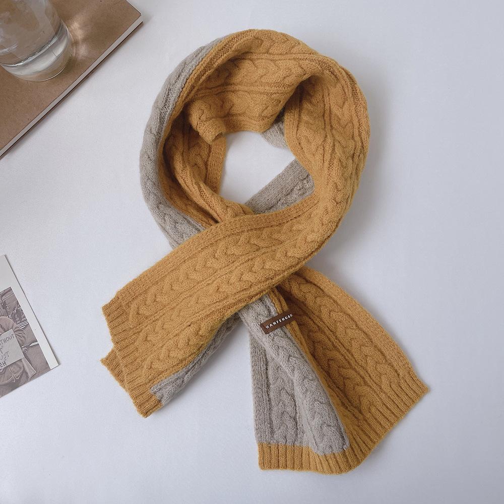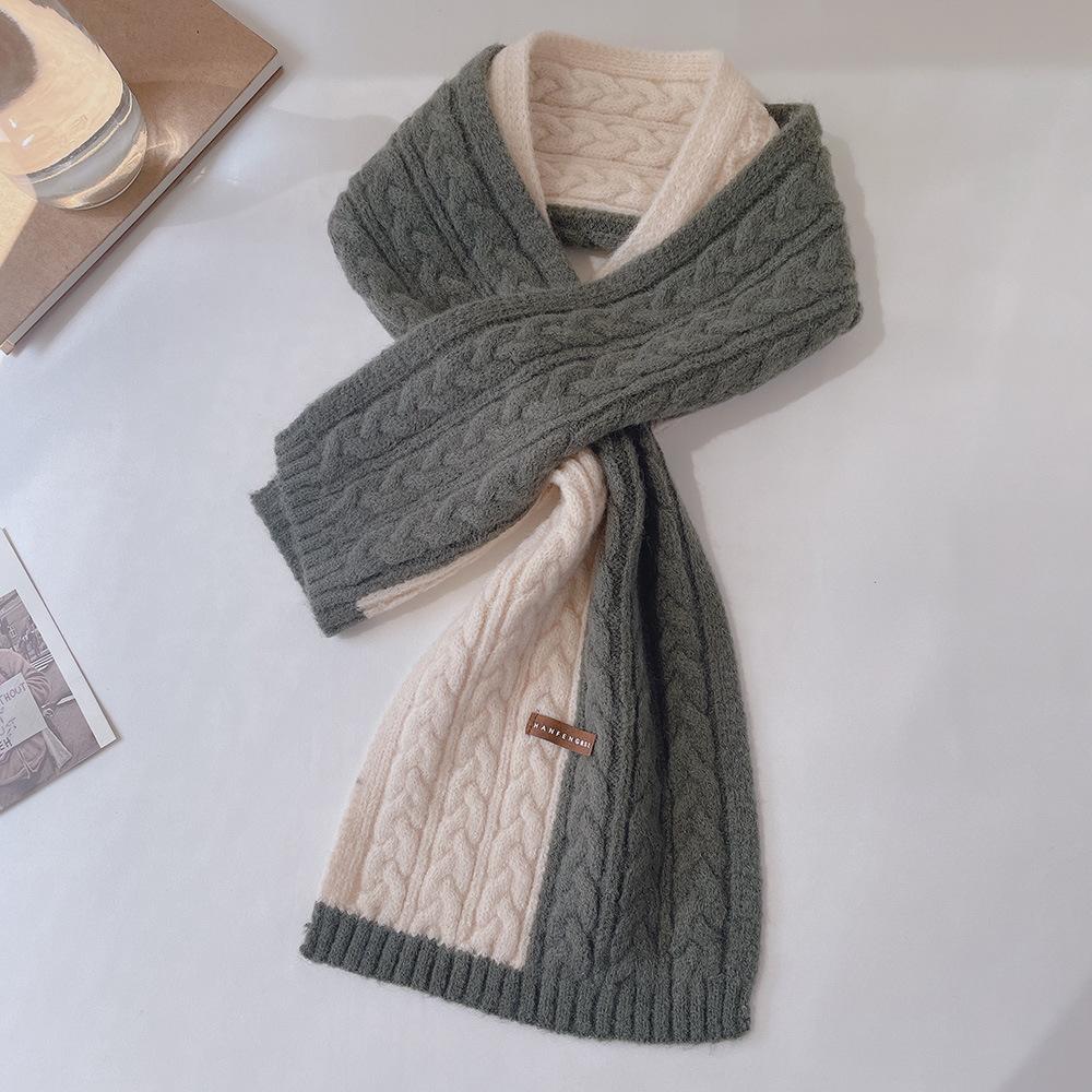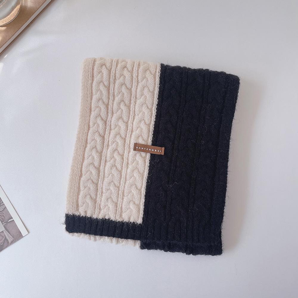 Bufanda tejida cruzada retorcida, estilo universitario británico de color contrastante, sin decoración recargada y llamativa, cómoda al tacto, duradera y que no se decolora, color cálido, elegante y discreta, un artículo de moda imprescindible~