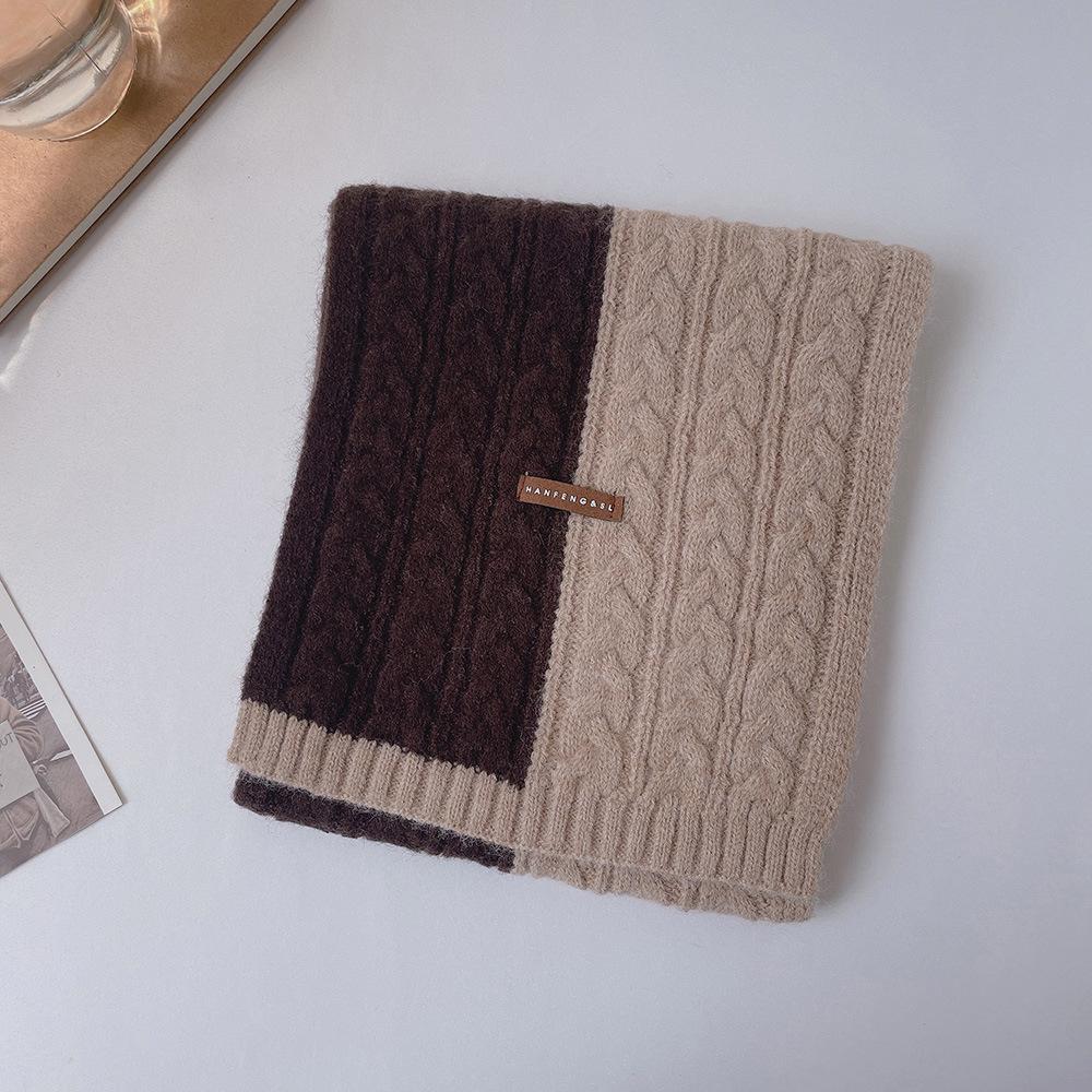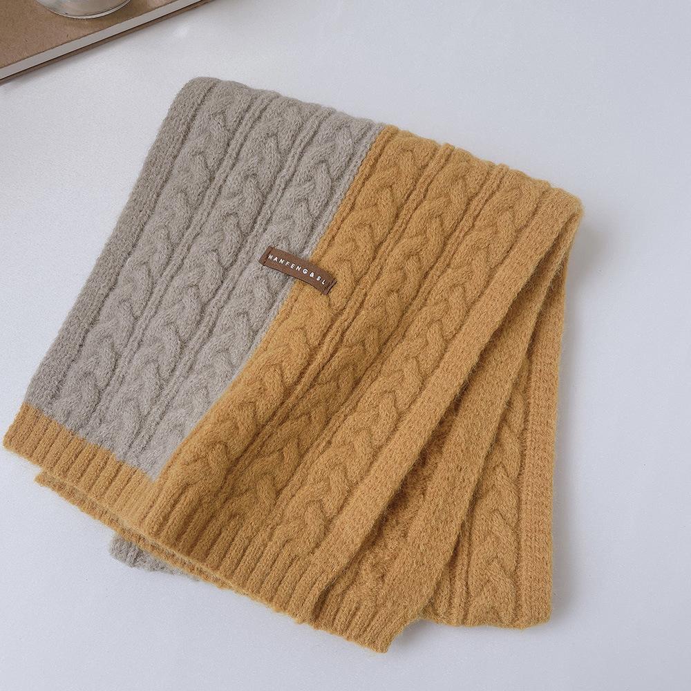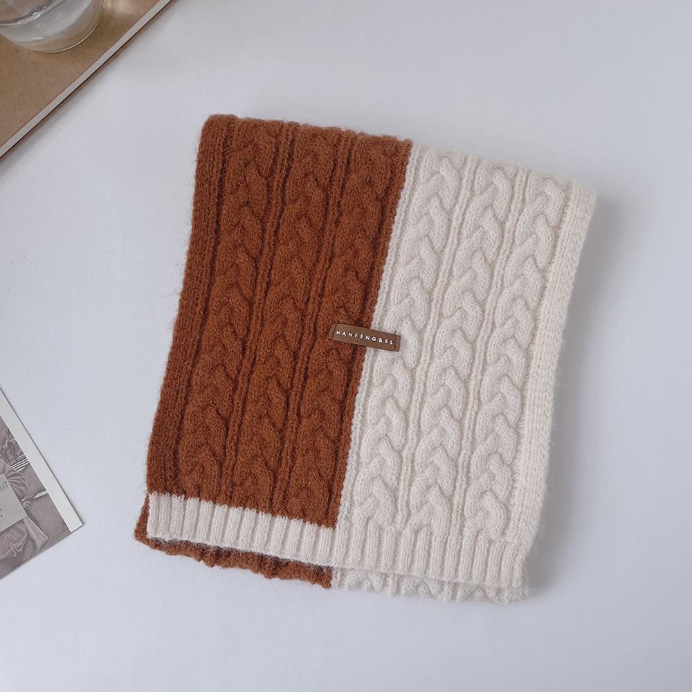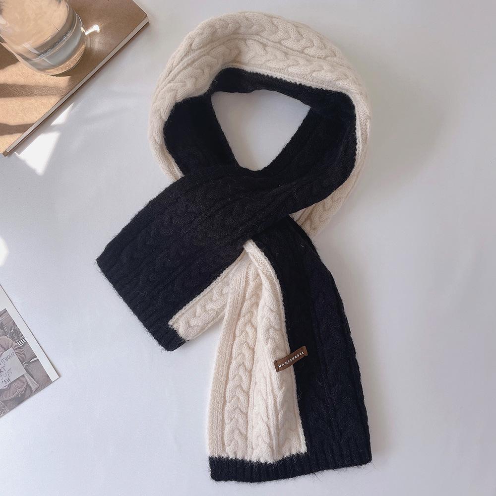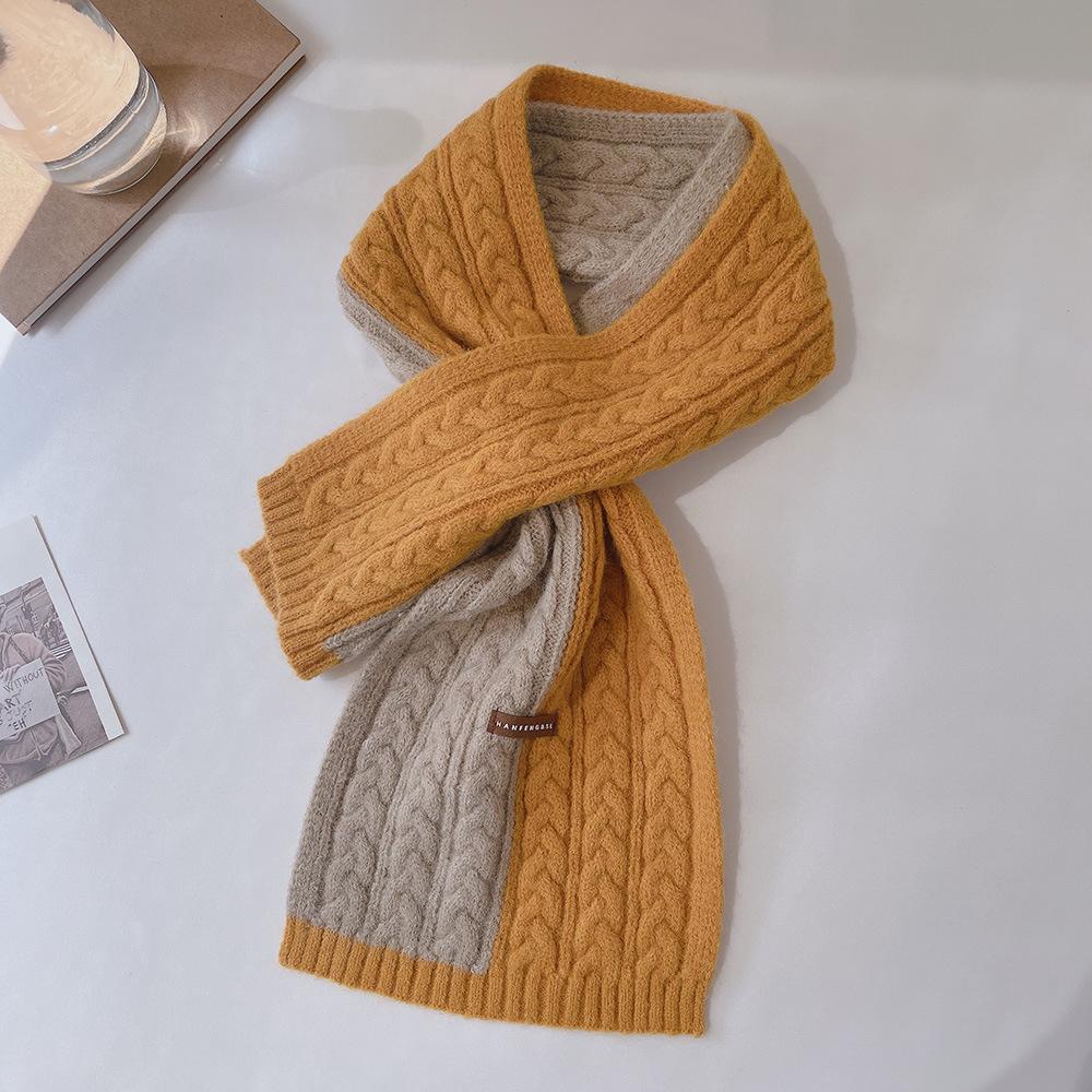 Bufanda tejida cruzada retorcida, estilo universitario británico de color contrastante, sin decoración recargada y llamativa, cómoda al tacto, duradera y que no se decolora, color cálido, elegante y discreta, un artículo de moda imprescindible~