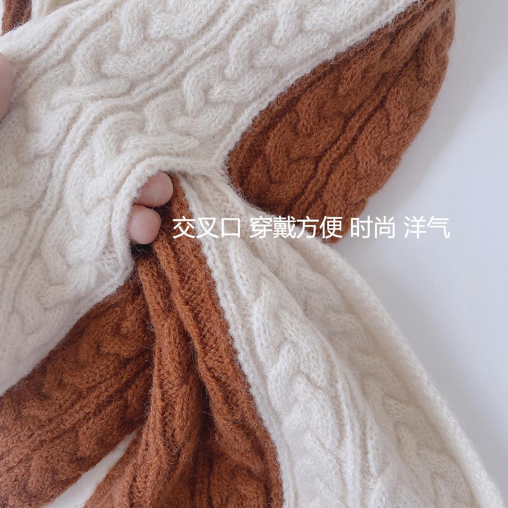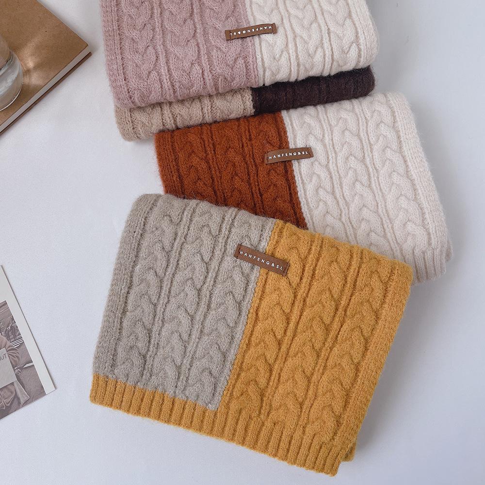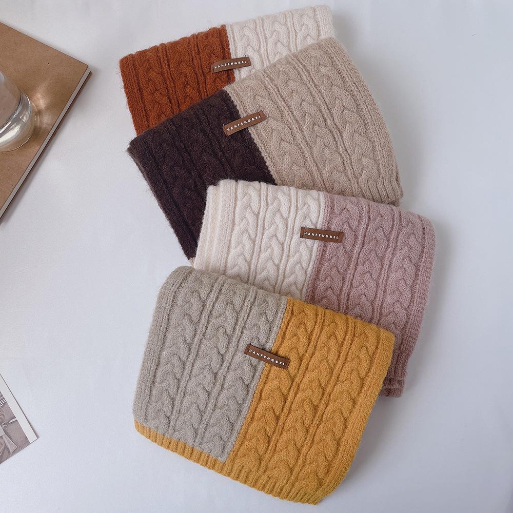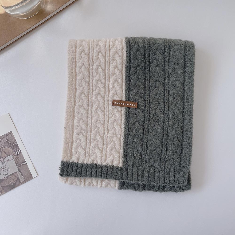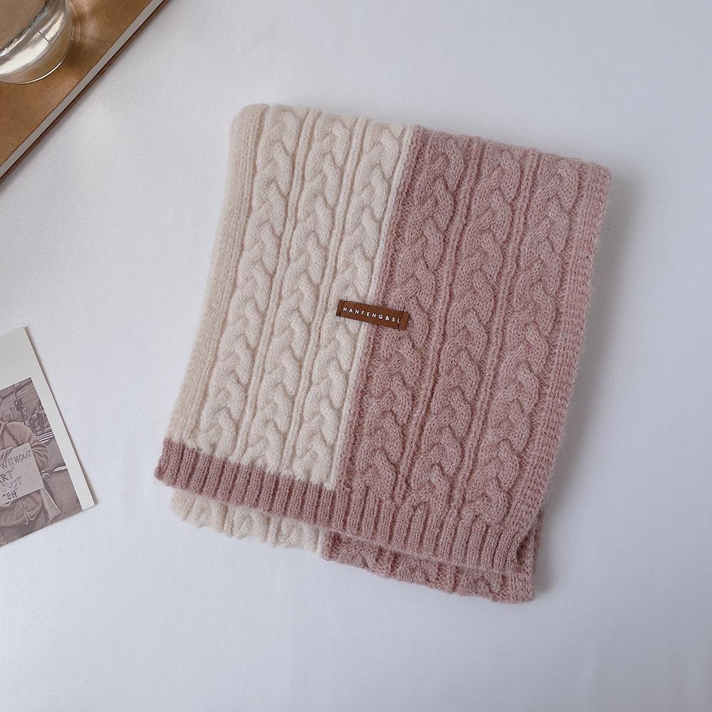 Bufanda tejida cruzada retorcida, estilo universitario británico de color contrastante, sin decoración recargada y llamativa, cómoda al tacto, duradera y que no se decolora, color cálido, elegante y discreta, un artículo de moda imprescindible~