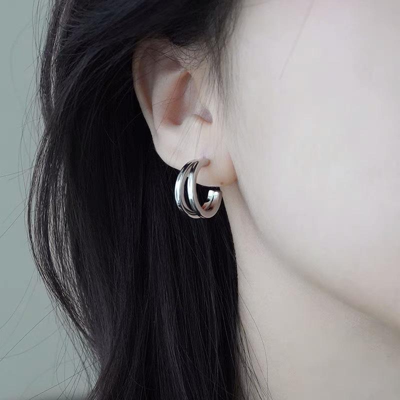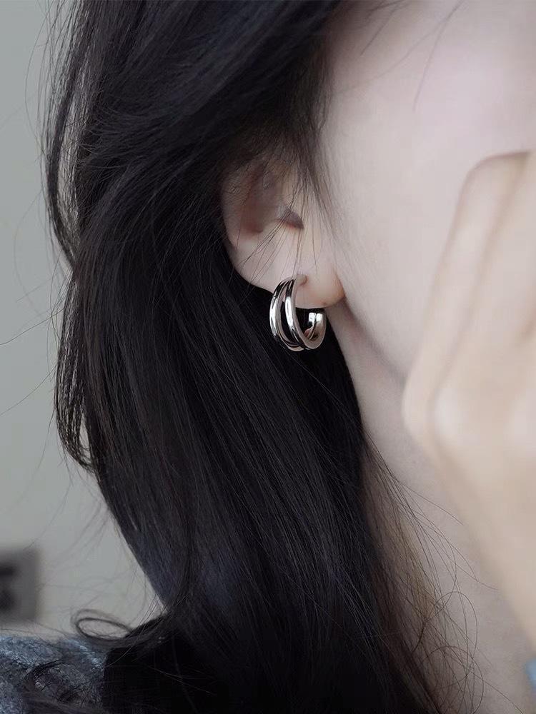 Aretes de Clip de Doble Círculo, Aretes de Clip de Disco para Bobina de Mosquito de Gama Alta, Aretes Plateados de Estilo Frío, Aretes y Pendientes Japoneses y Coreanos Ins sin Perforación