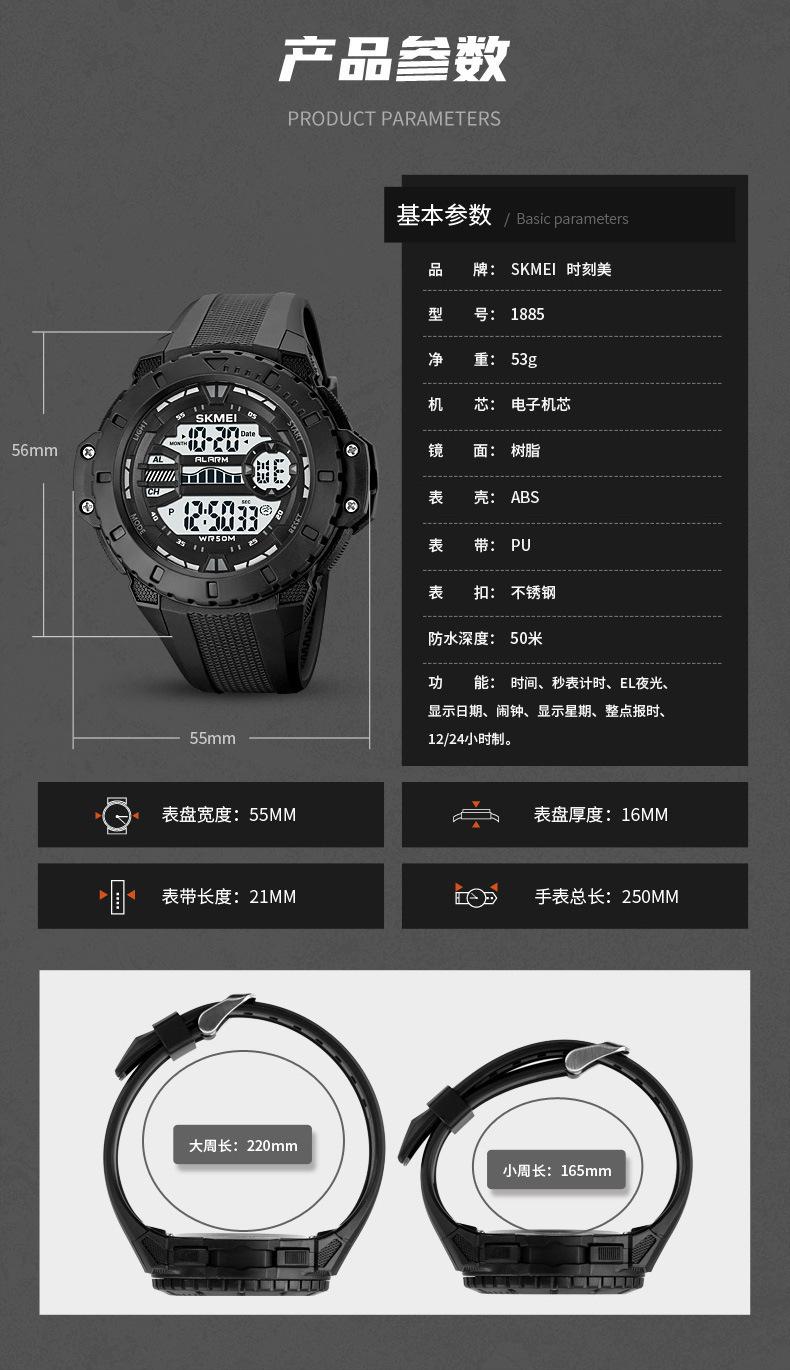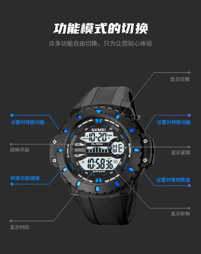 Skmei deportes esfera grande reloj electrónico resistente al agua para estudiantes varones ventas calientes transfronterizas moda Reloj de Hombre muñeca