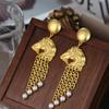 Aretes de Borla de Perla con Cabeza de Caballo Estilo Medieval, Aretes Retro Elegantes de Alta Gama, Nuevos Aretes de Moda de Celebridad de Internet