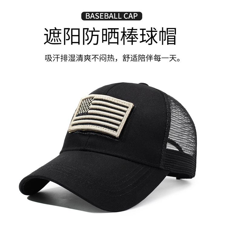 Gorra de Béisbol Bordada con Camuflaje de la Bandera Estadounidense, Gorra de Malla para Hombre para Exteriores con Velcro