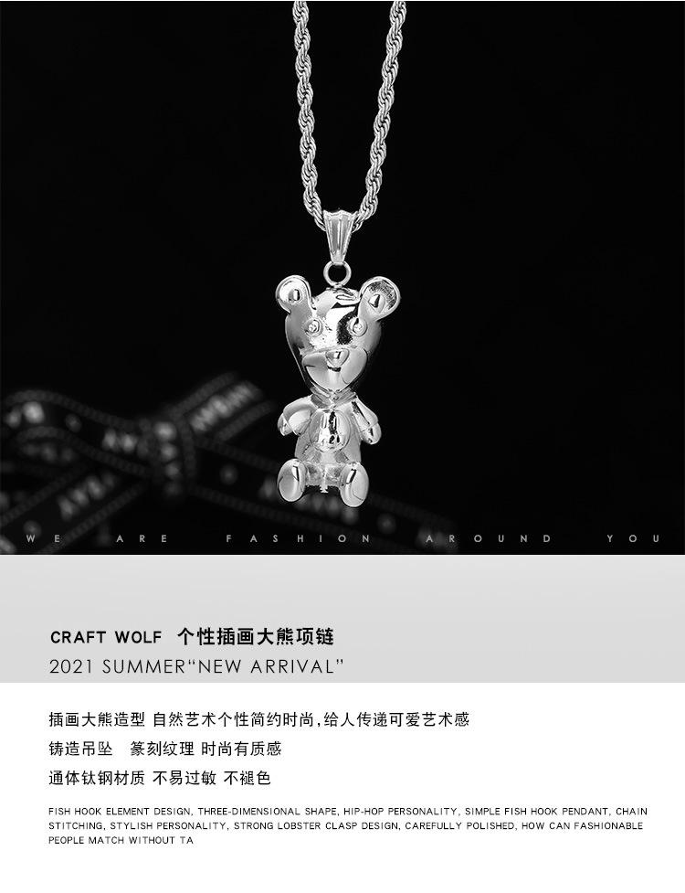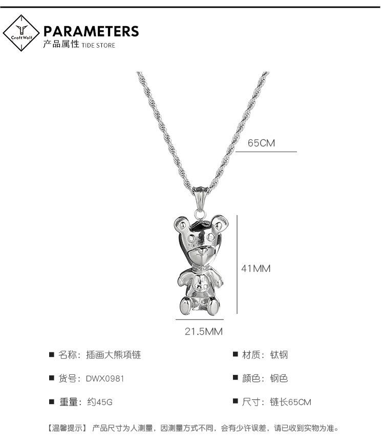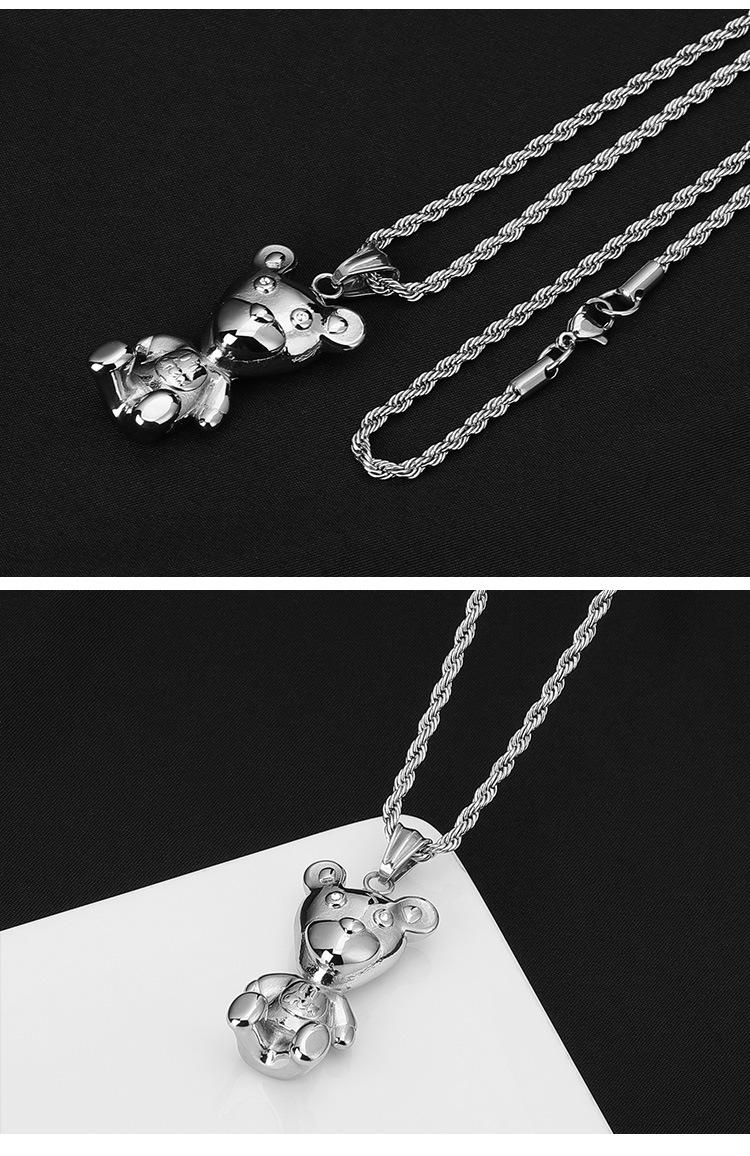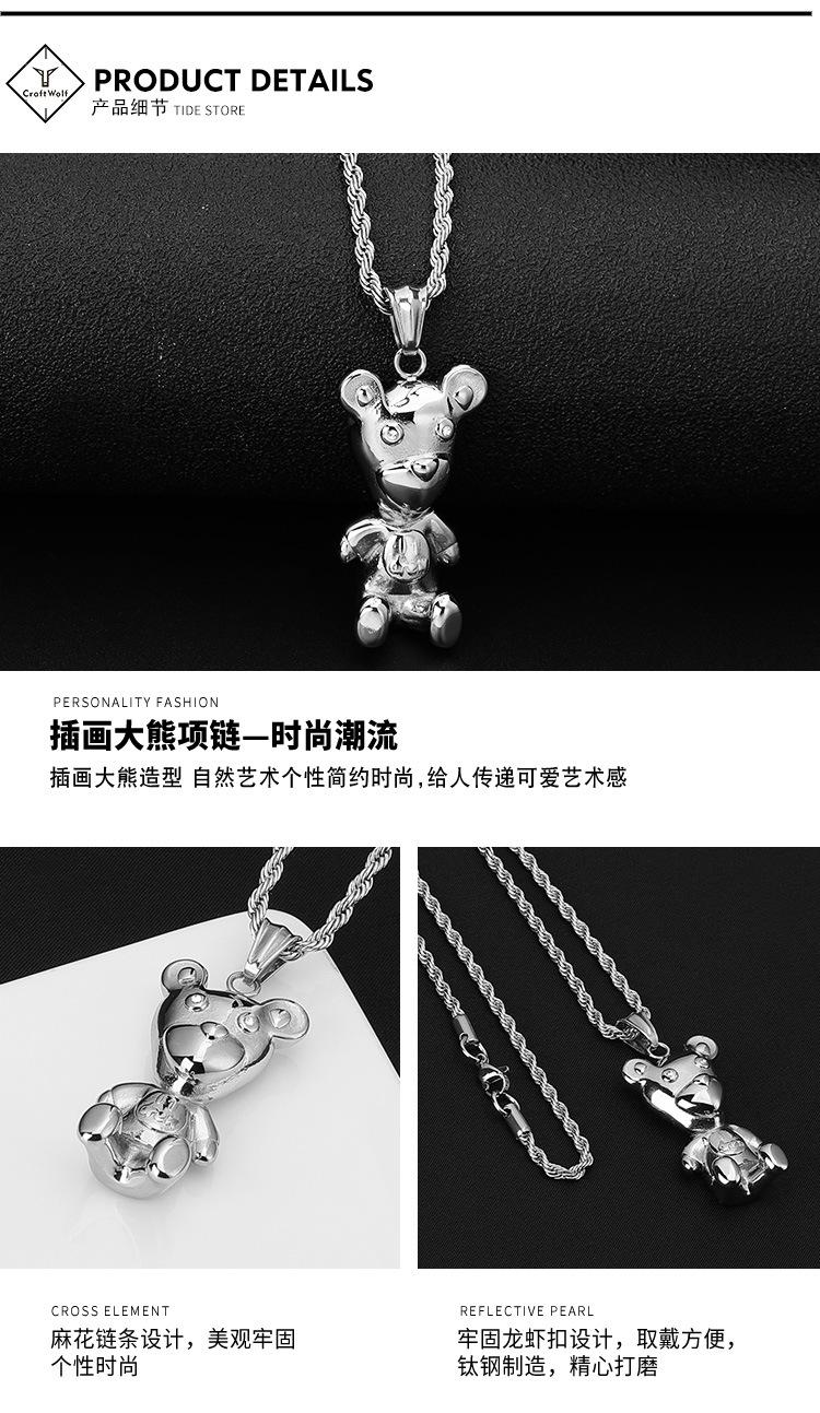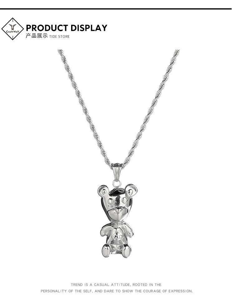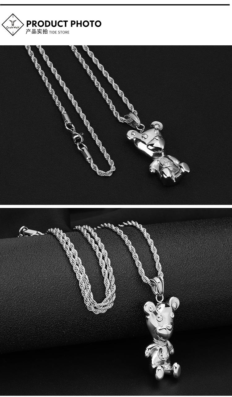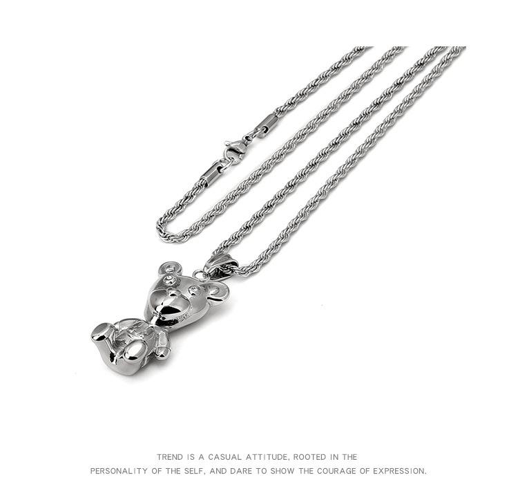 Collar de acero de titanio con diseño de oso tridimensional de moda coreana, collar rojo de red para hombres, colgante para amantes, adornos de moda