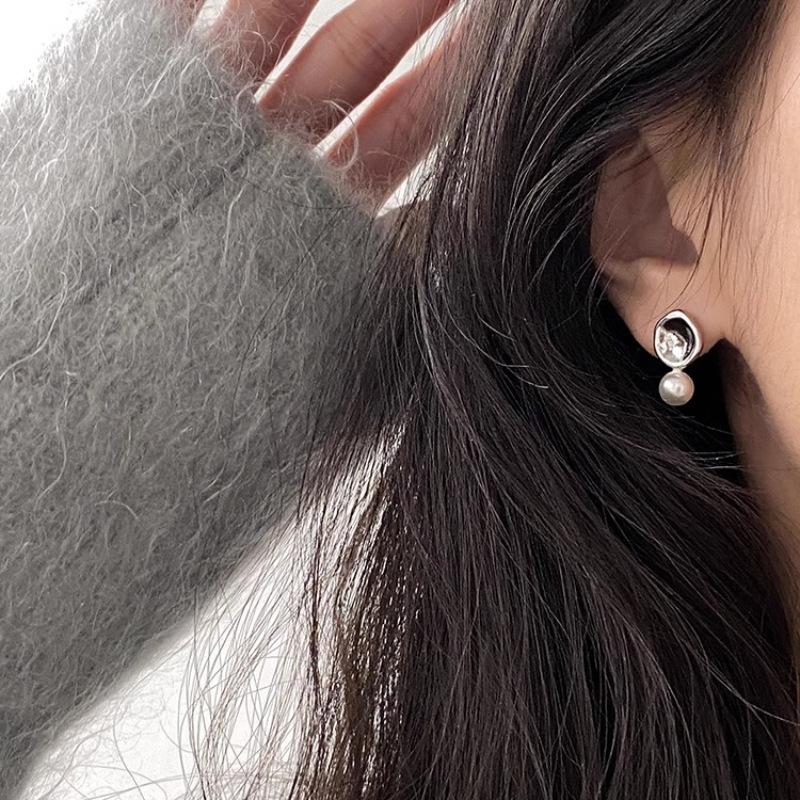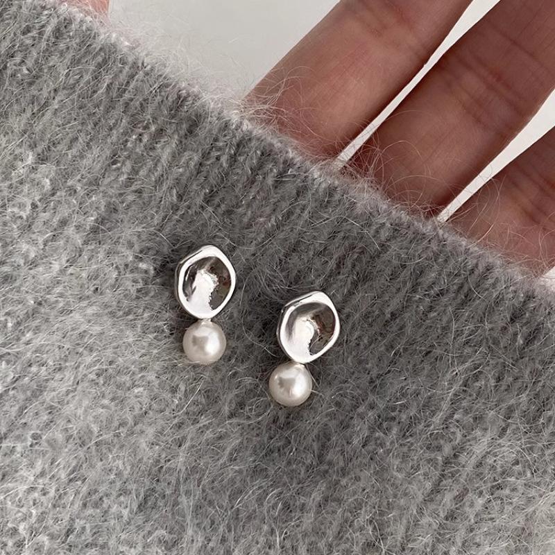 Pendientes de perla blanca con diseño geométrico de nicho para mujer, estilo frío, personalidad de moda, pendientes pequeños que combinan con todo.