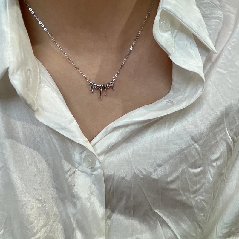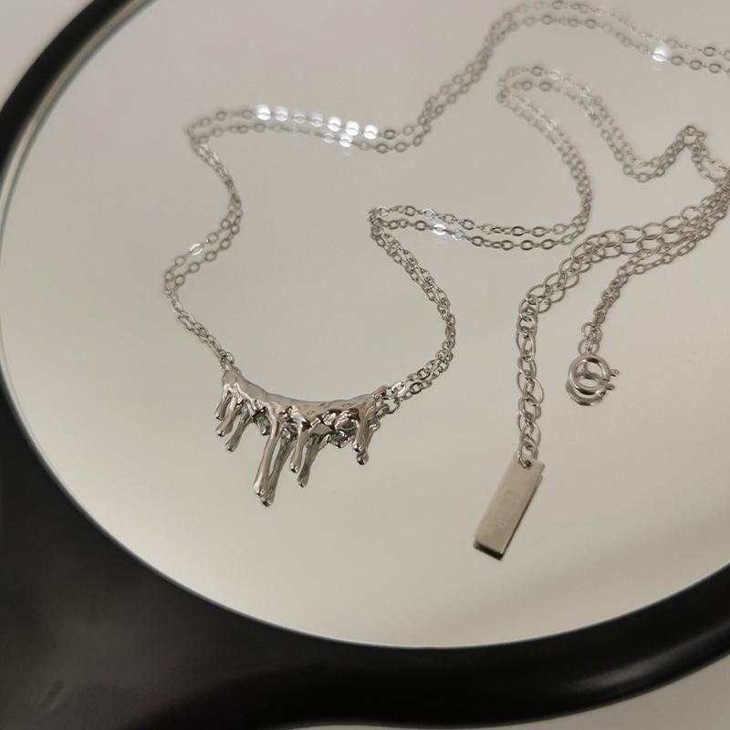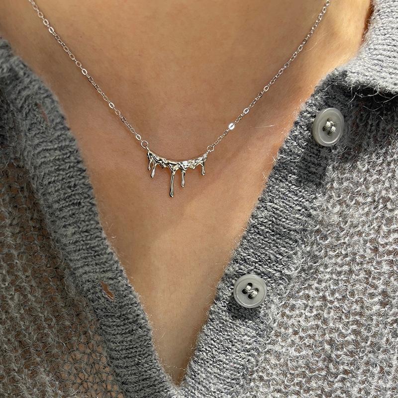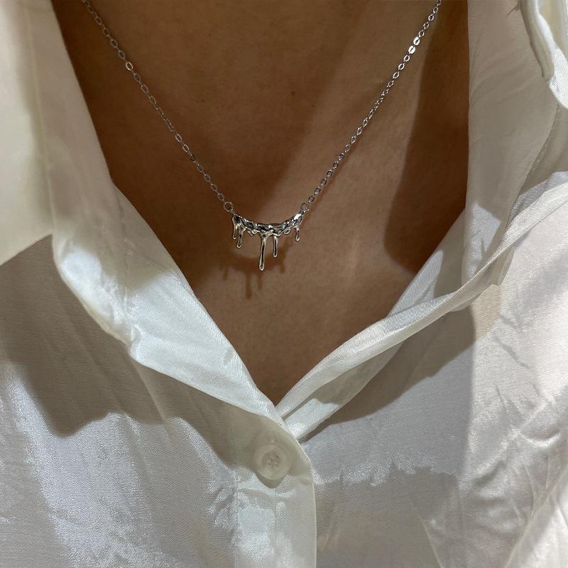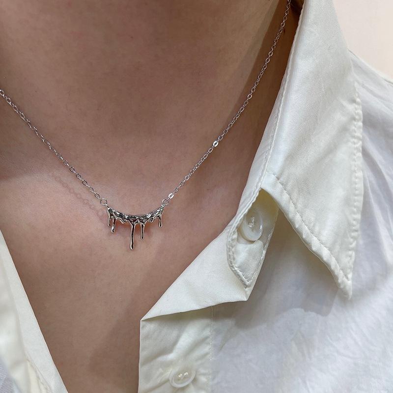 Compra Collar de gota de agua líquida de plata S925 estilo coreano para mujer, cadena de clavícula de lava distintiva estilo hip-hop, cadena de suéter de moda al por mayor en Joom.pro
