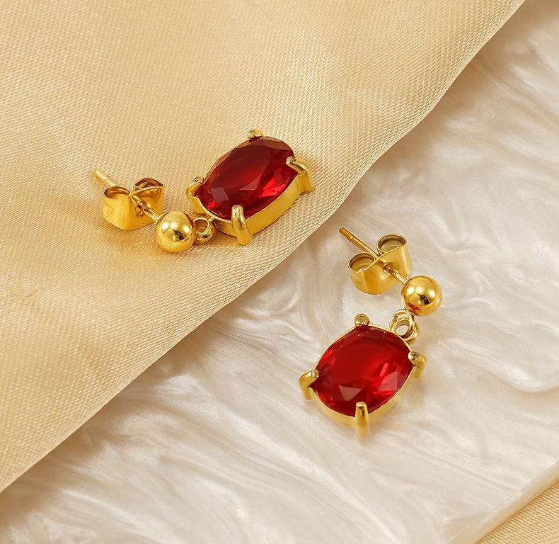 Pendientes geométricos de acero inoxidable de estilo frío transfronterizo europeo y americano, acero de titanio, oro de 18 quilates, pendientes rojos de red simples, venta al por mayor femenina INS
