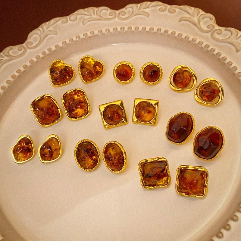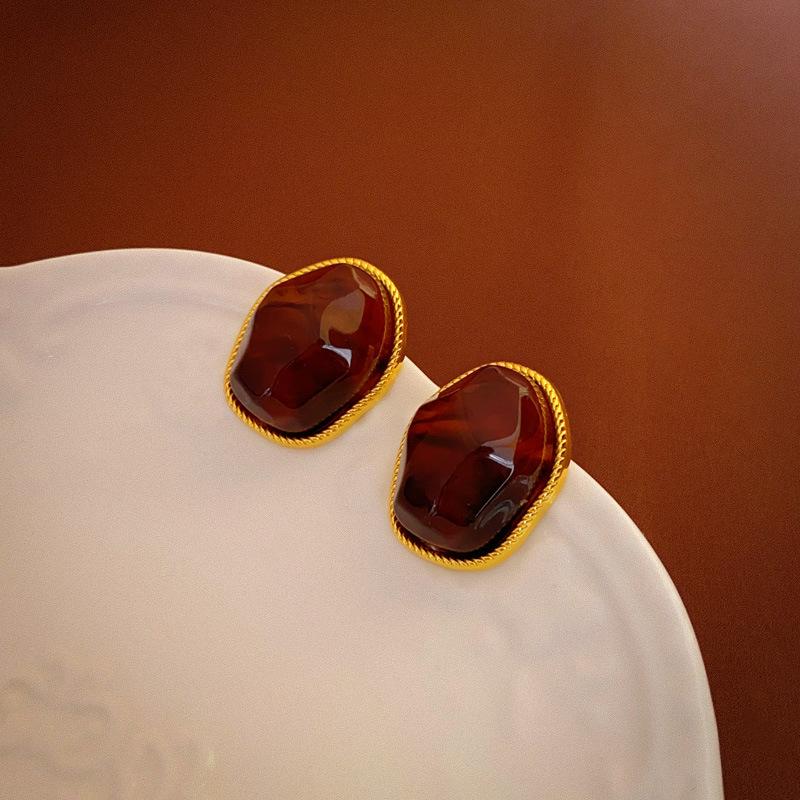 Pendientes Maillard elegantes de resina con forma irregular y diseño geométrico de aguja plateada, con personalidad de nicho y personalidad de celebridades de Internet, de alta gama para mujer.