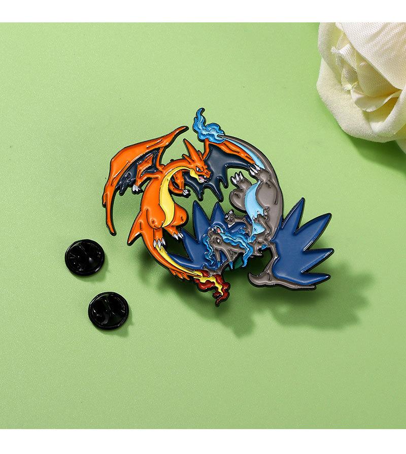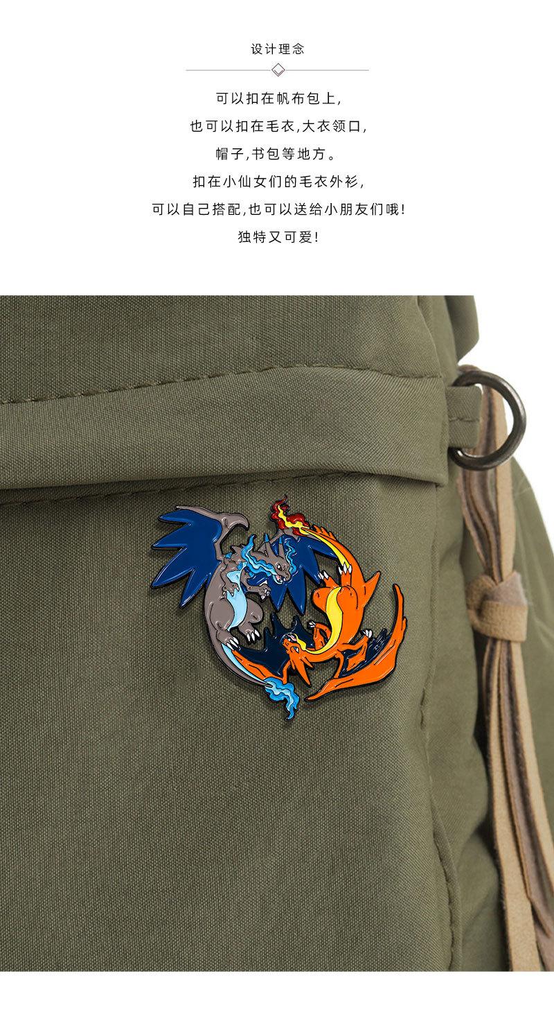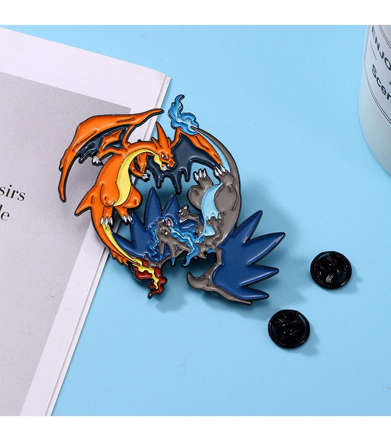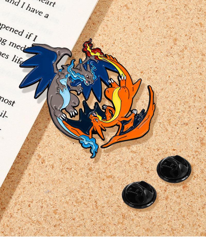 Insignia de Pokémon, broche de araña de aleación decorativa con diseño de dragón que escupe fuego, evolución XY, mochila escolar de dibujos animados