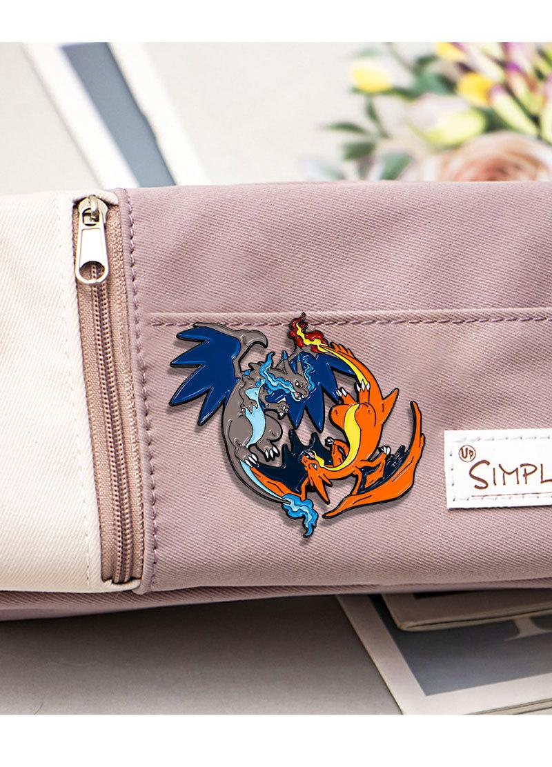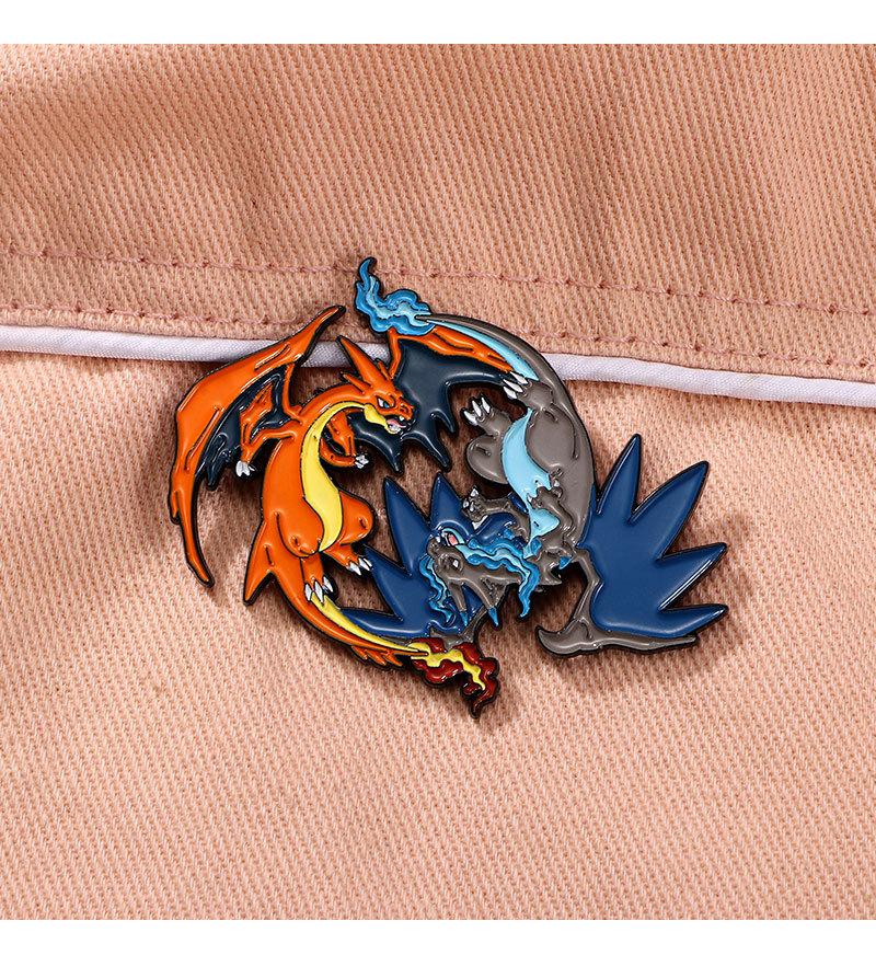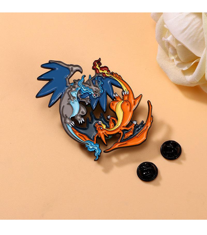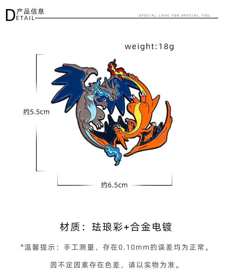 Insignia de Pokémon, broche de araña de aleación decorativa con diseño de dragón que escupe fuego, evolución XY, mochila escolar de dibujos animados