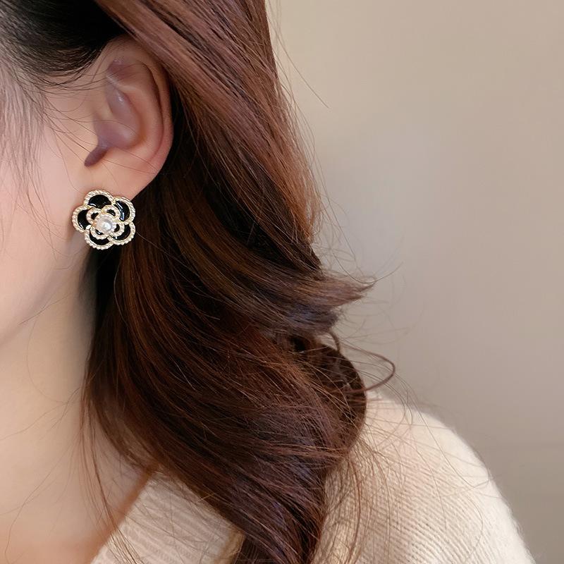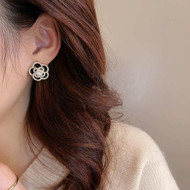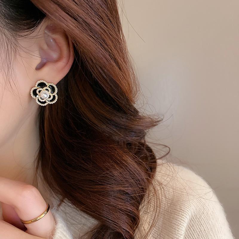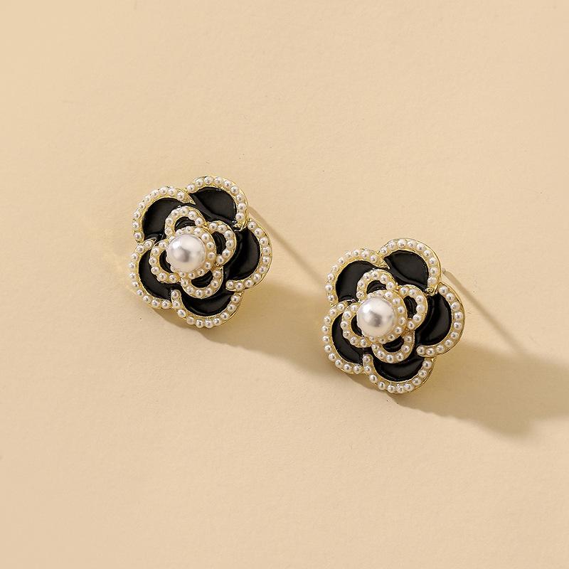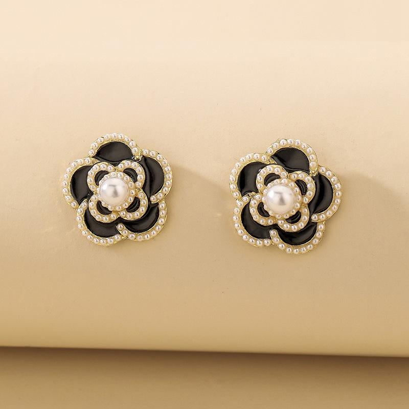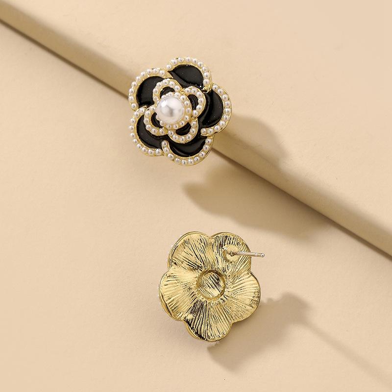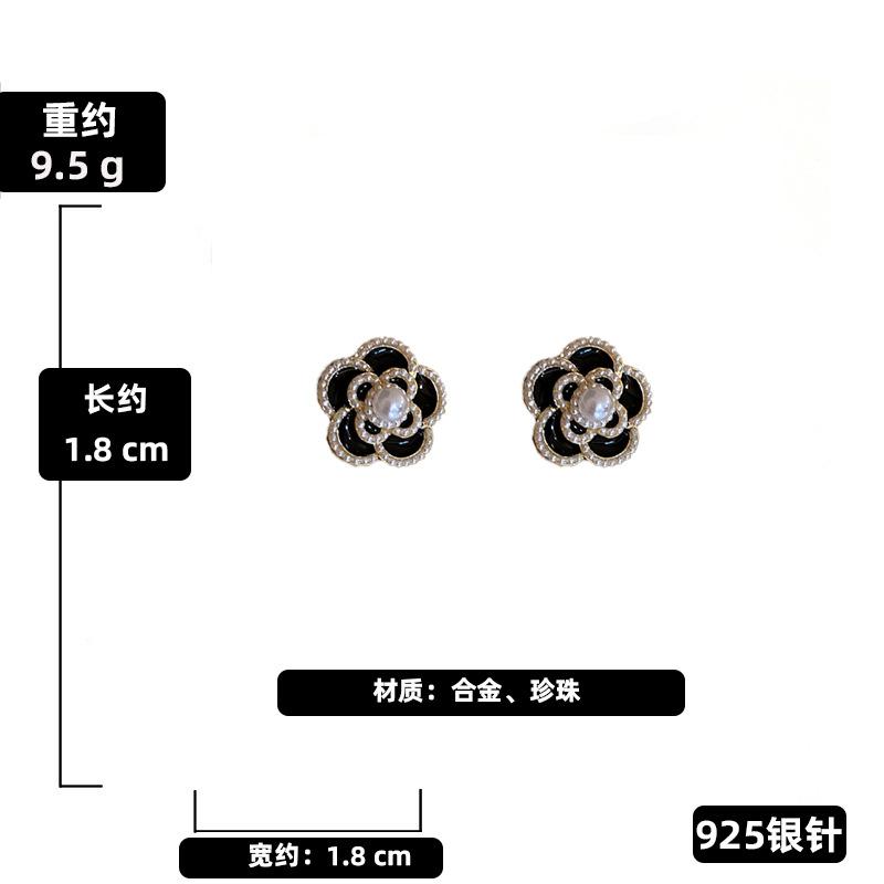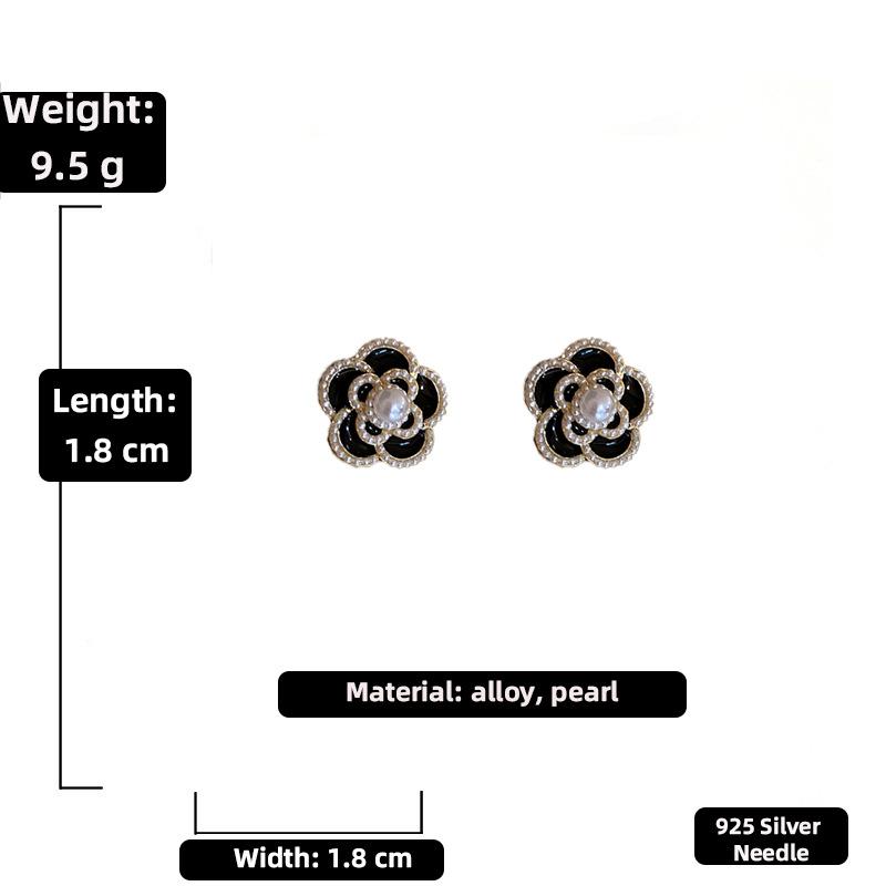 Aretes de Flor de Perla Imitación Gota de Aceite Vintage Aguja de Plata para Mujer, Moda Ins Europea y Americana, Aretes Elegantes y Dulces al por Mayor