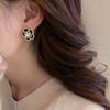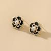 Silver Needle-Black Flower Earrings