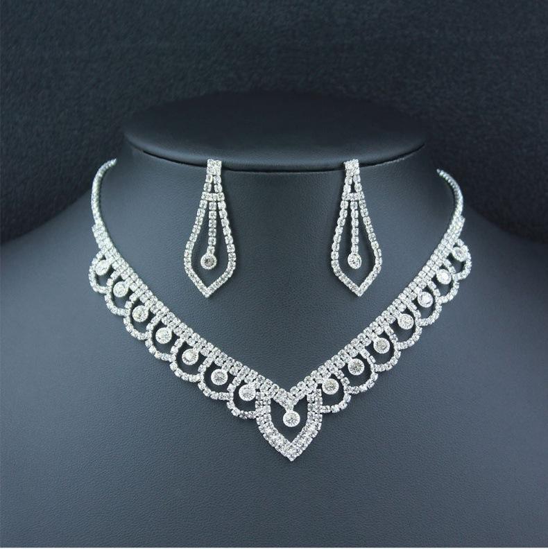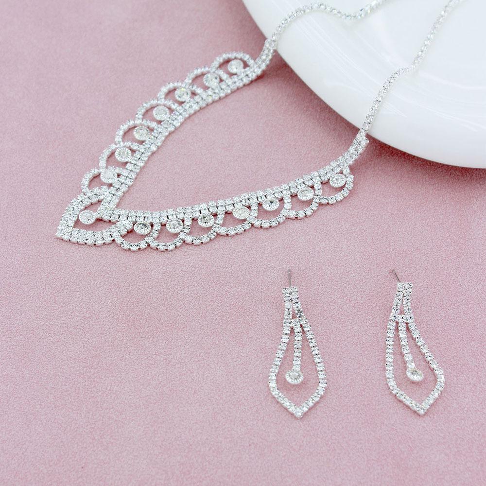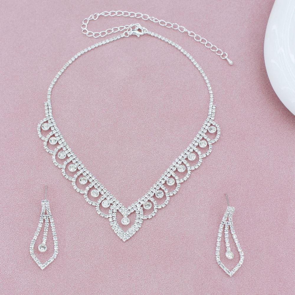 Nuevo diseño de collar con elegante encaje en forma de V y diamantes de imitación, pendientes huecos, joyería para mujer, joyería elegante de lujo ligera.