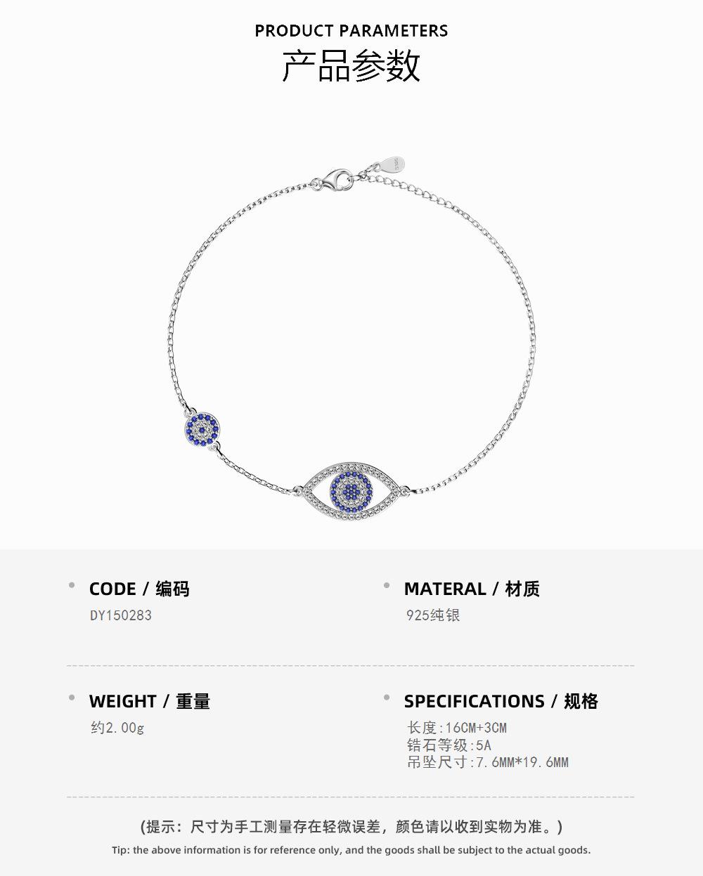 Pulsera de plata de ley S925 estilo ins transfronterizo para mujer, de alta gama, con diseño de disco de ojos azules y circonita azul, pulsera con personalidad que combina con todo.
