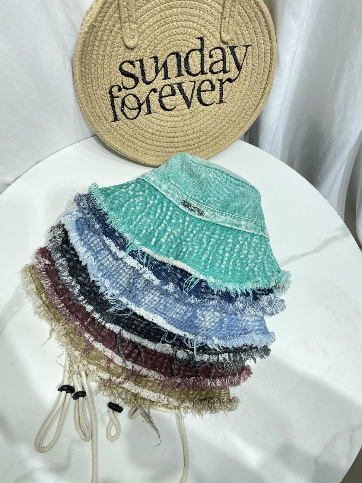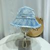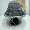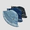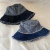 Sombrero de pescador de mezclilla desgastado, lavado y deshilachado, estilo japonés, para mujer, para primavera y verano, protección solar al aire libre, sombrero de lavabo con aspecto de cara, sombrero pequeño para el sol