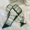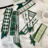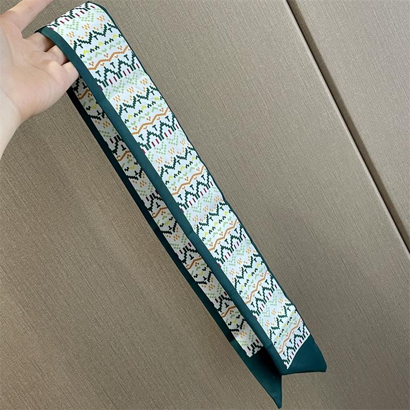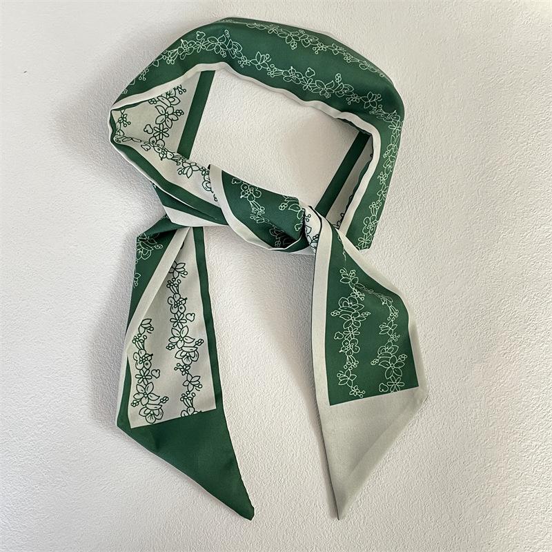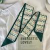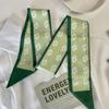 Pañuelo para la cabeza estilo fresco pequeño Banda para el cabello estilo verde Bufanda de seda Bufanda pequeña larga para mujer Cinta de doble capa Cinta Estilo japonés Corbata para bolsa Traje Bufanda