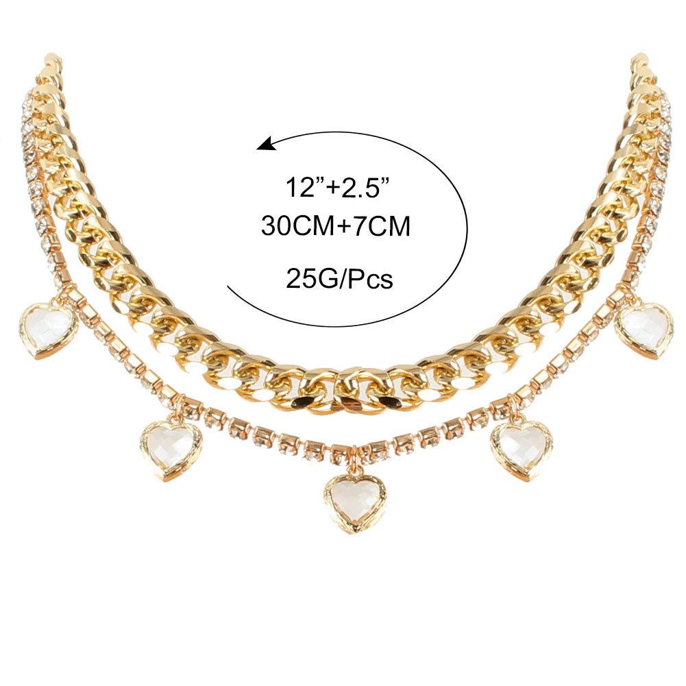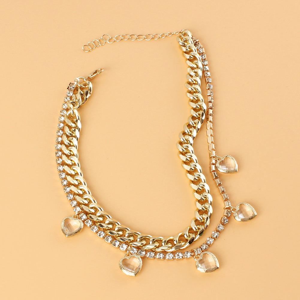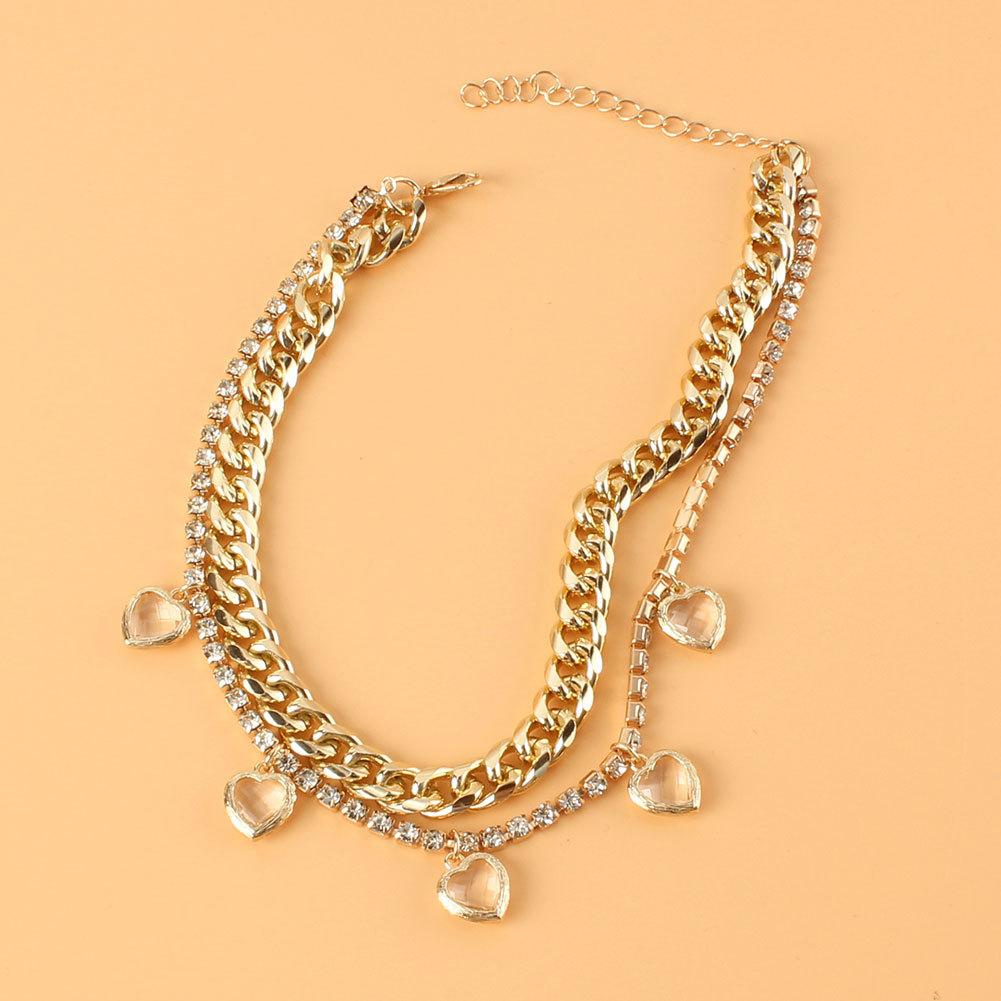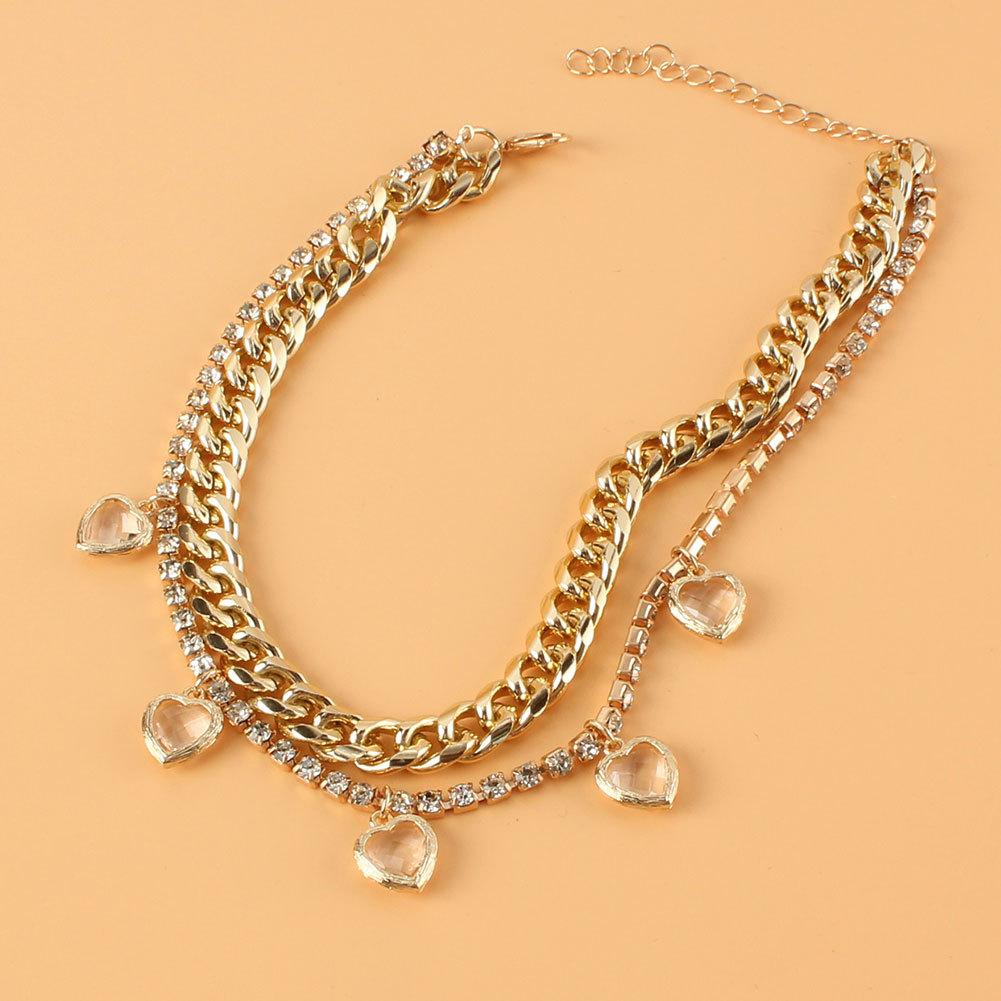 Collar de cadena gruesa estilo hip-hop callejero de joyería transfronteriza de Europa y Estados Unidos, cadena de garra de pedrería, collar con colgante en forma de corazón 16840