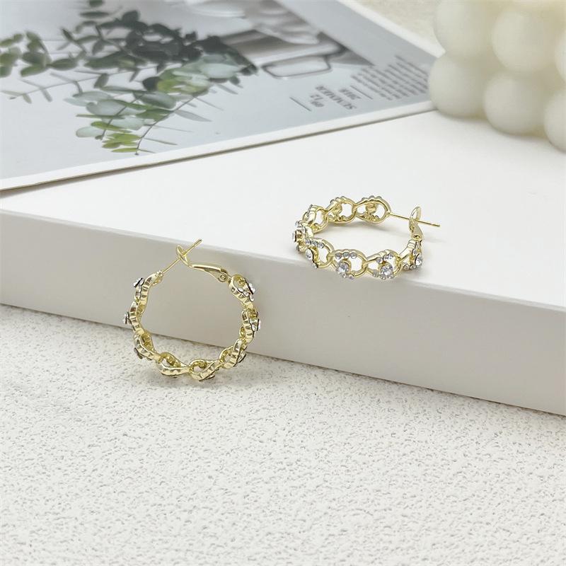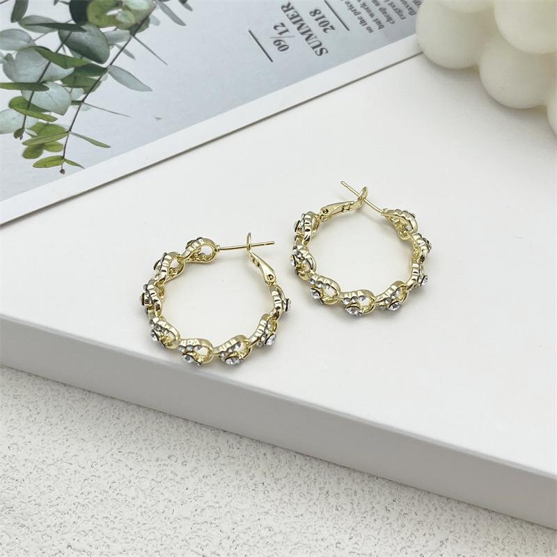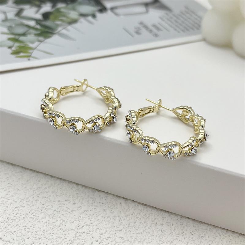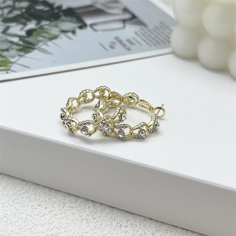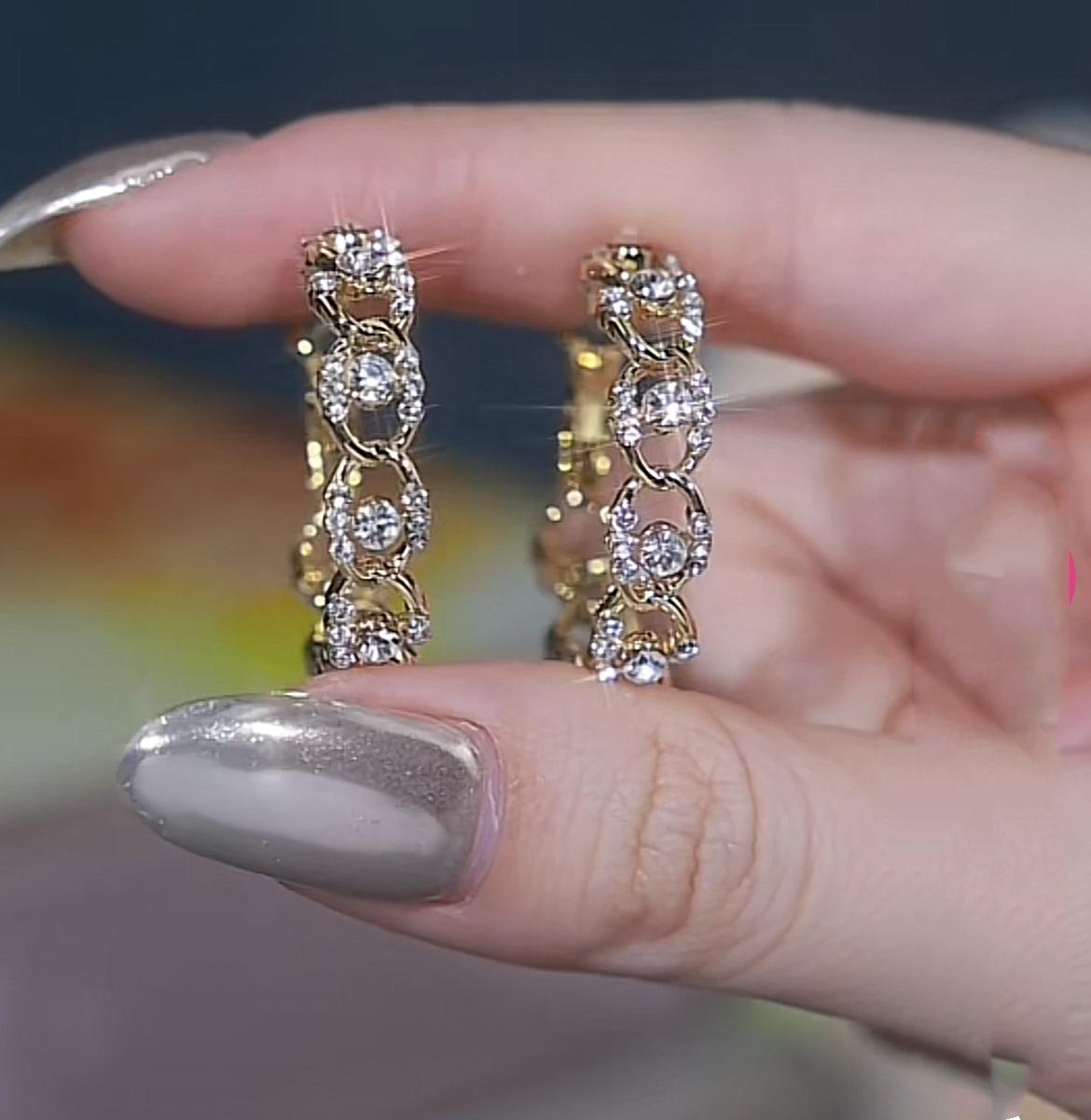 Compra Pendientes geométricos Super Flash con incrustaciones de diamantes en oro, ligeros, lujosos, retro, elegantes, a la moda, que combinan con todo, exquisitos, de industria pesada. al por mayor en Joom.pro