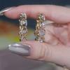Pendientes geométricos Super Flash con incrustaciones de diamantes en oro, ligeros, lujosos, retro, elegantes, a la moda, que combinan con todo, exquisitos, de industria pesada.