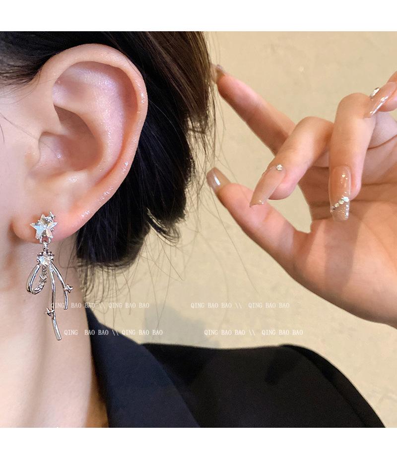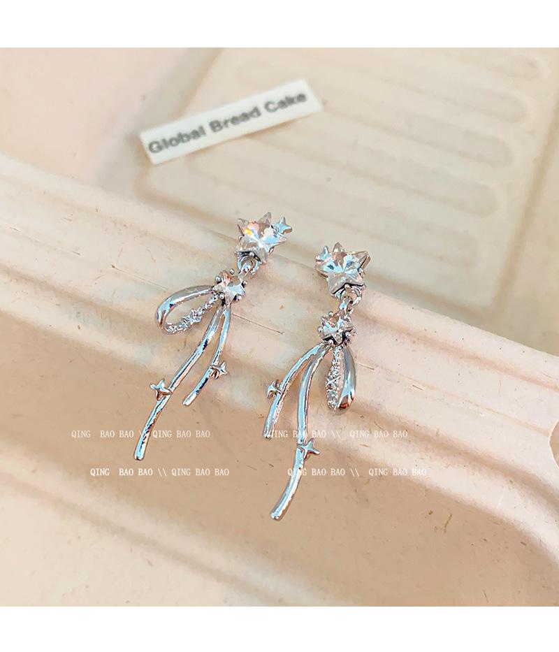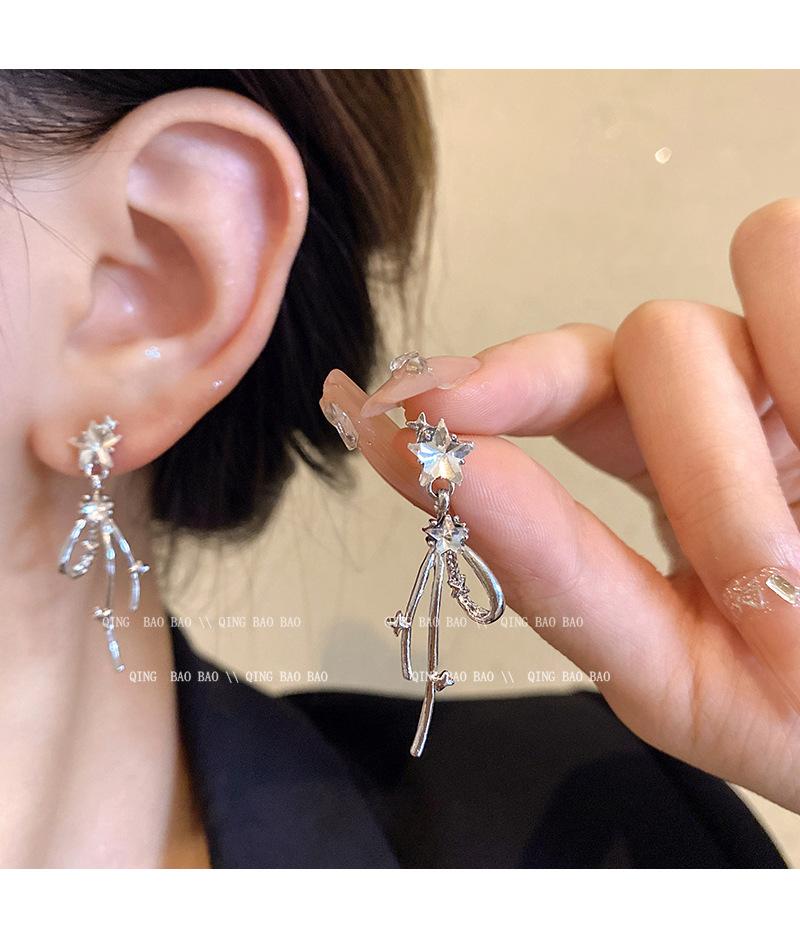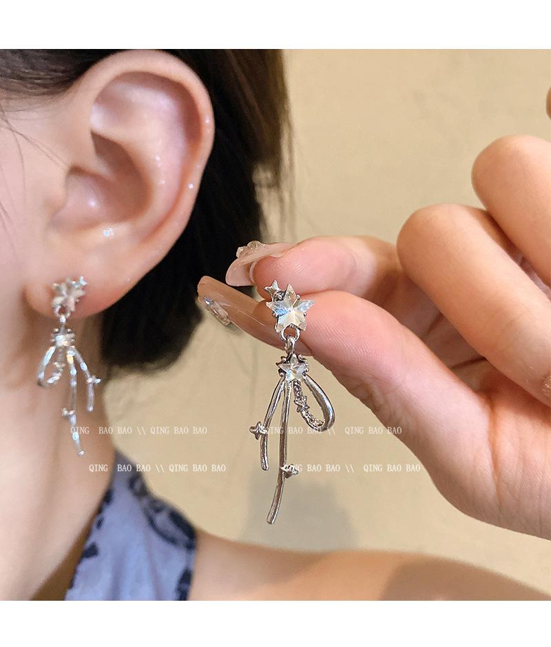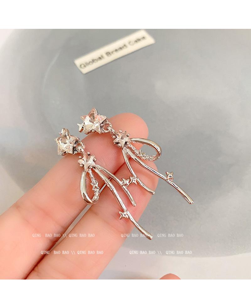 Aretes Largos de Estrella de Diamante Estilo Coreano Simples Personalidad Moda Celebridad de Internet Aretes Elegantes Sentido Avanzado Aretes de Borla para Mujeres