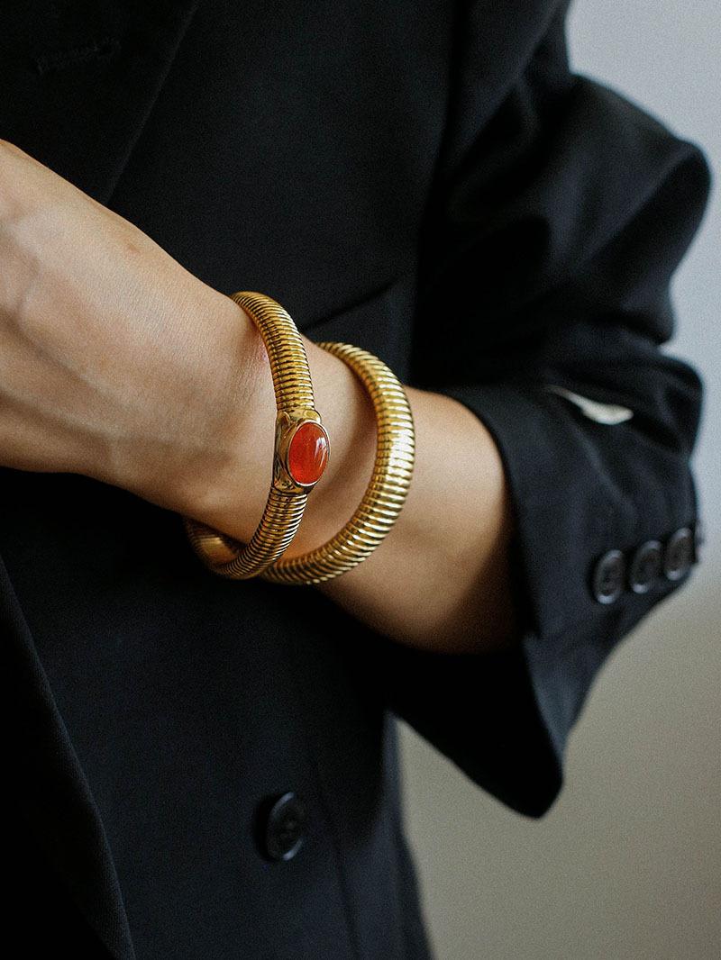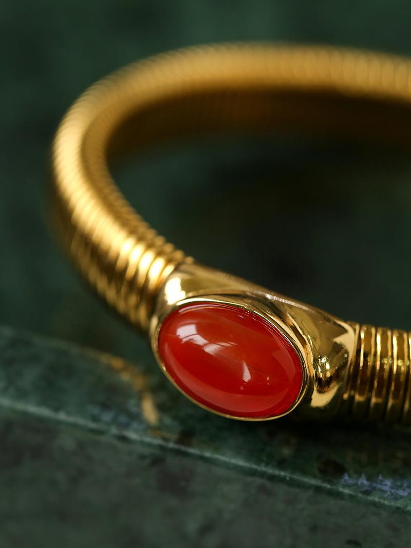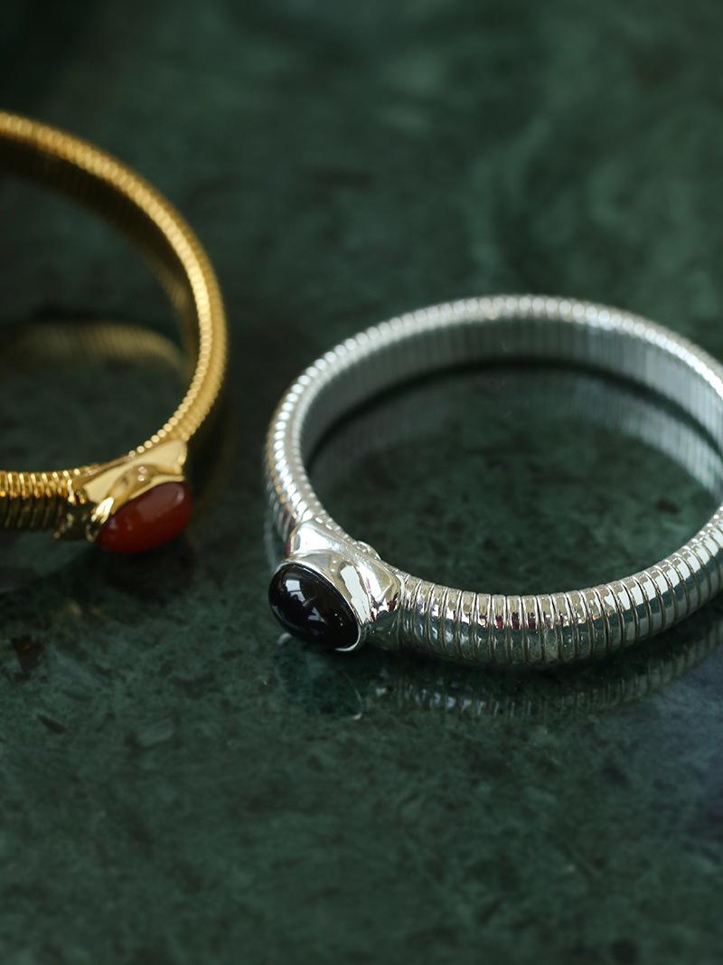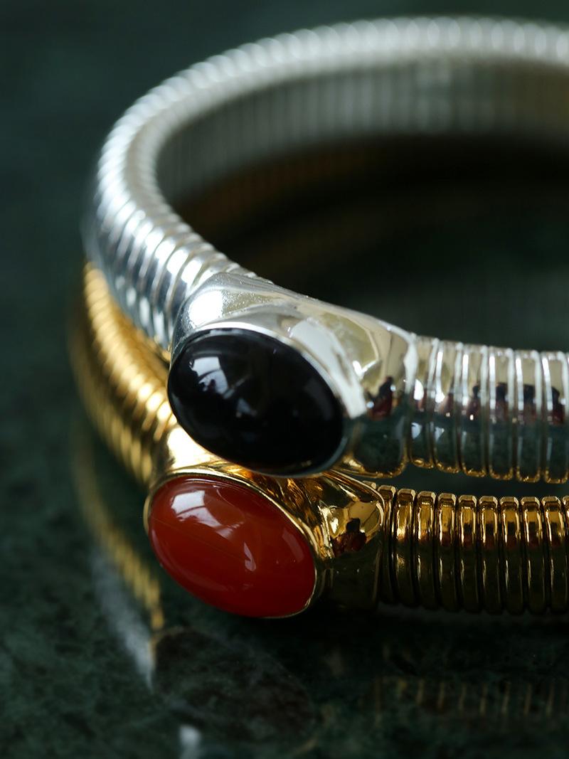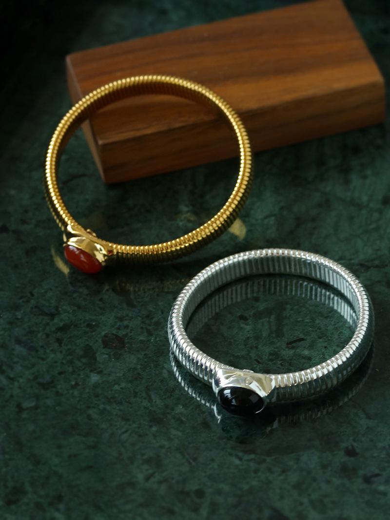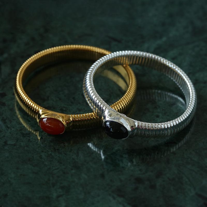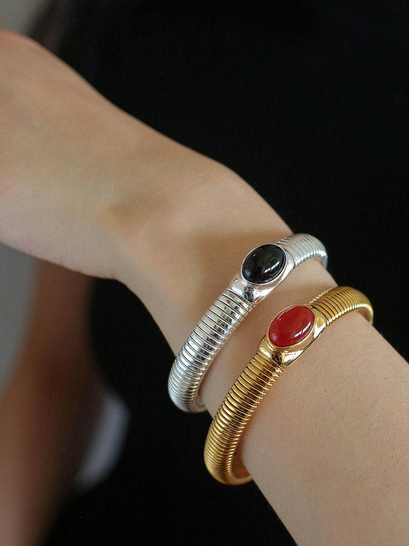 Pulsera Elástica Vintage Italiana Tubo de Gas Ágata Roja Pulsera para Mujer Moderna Simple Rayada Ágata Negra Pulsera