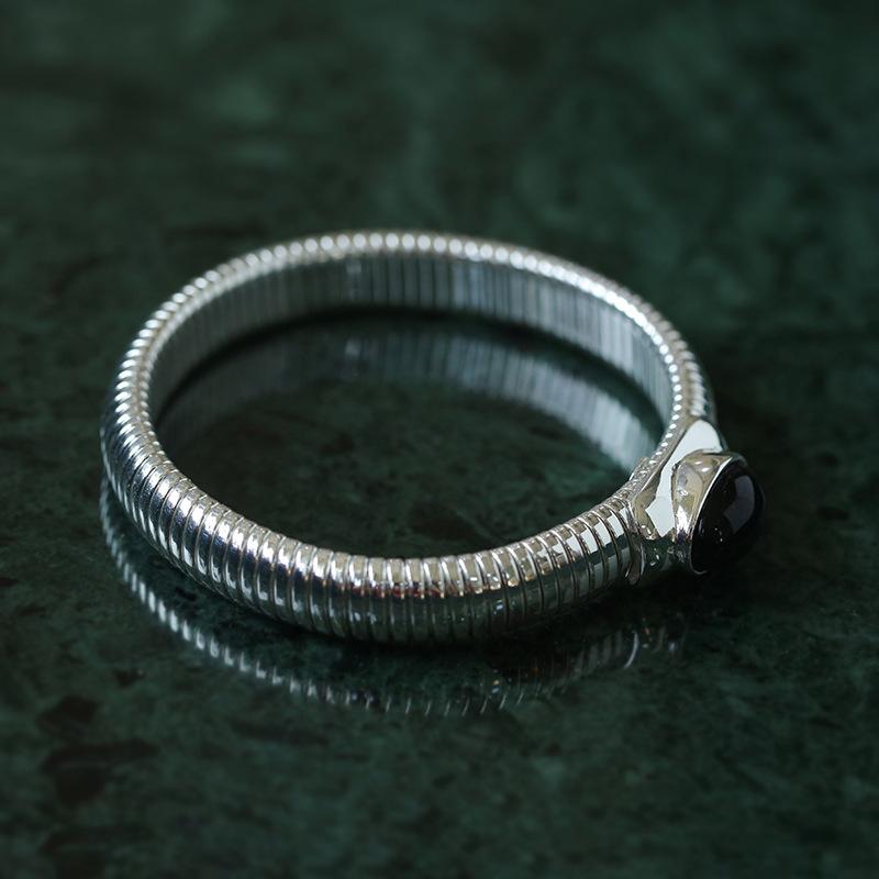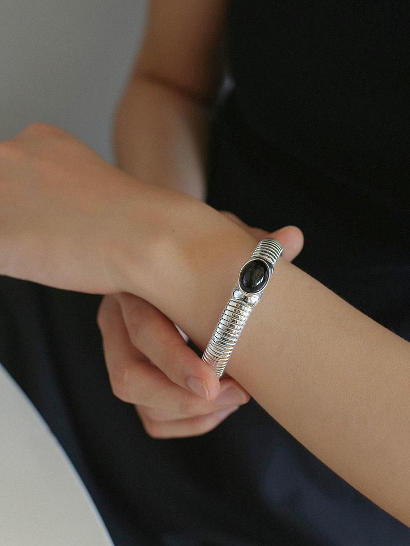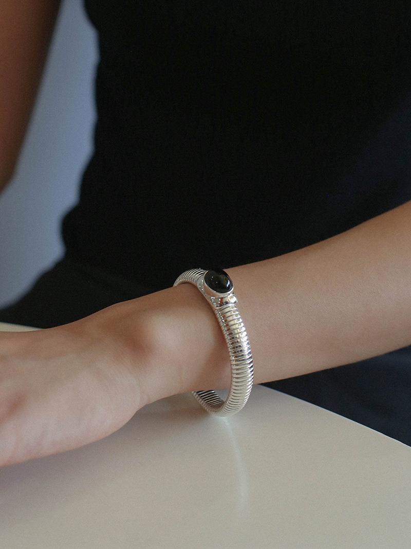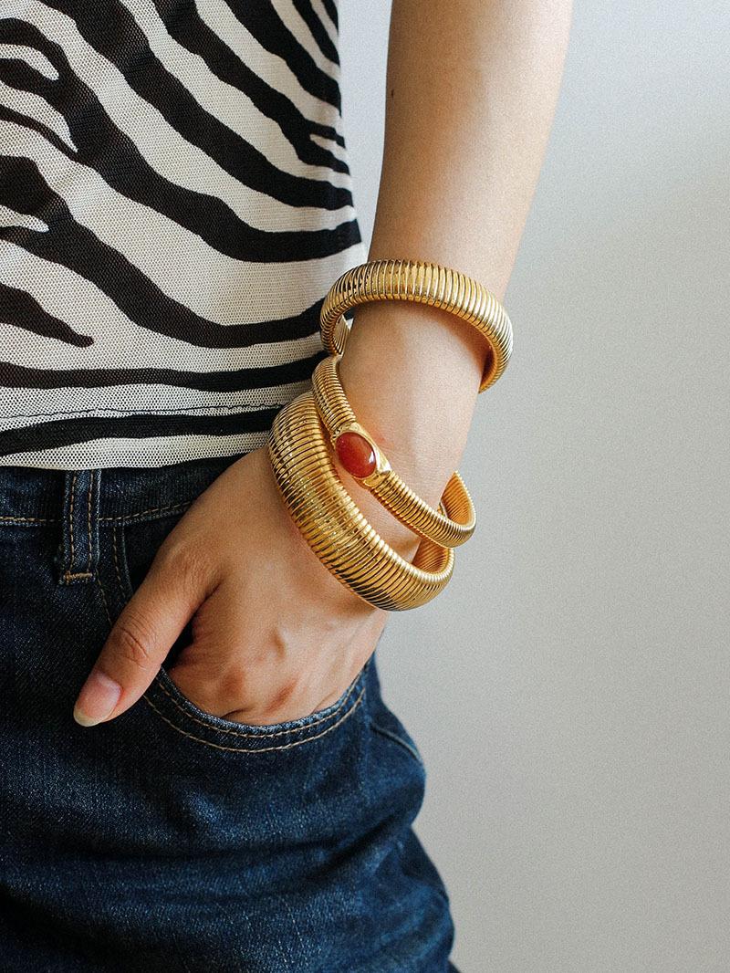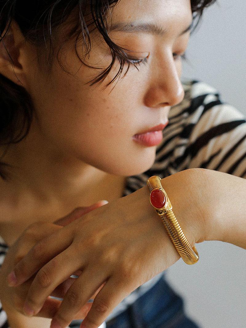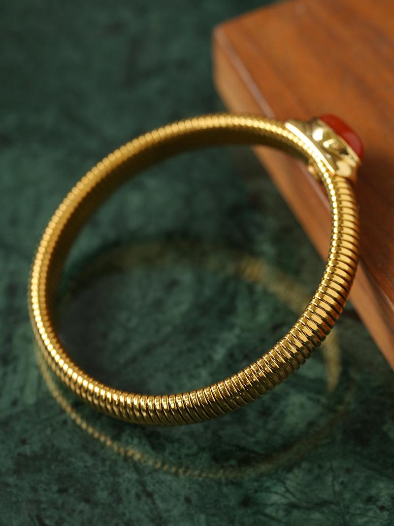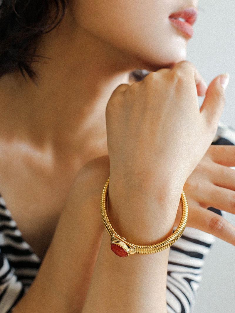 Pulsera Elástica Vintage Italiana Tubo de Gas Ágata Roja Pulsera para Mujer Moderna Simple Rayada Ágata Negra Pulsera