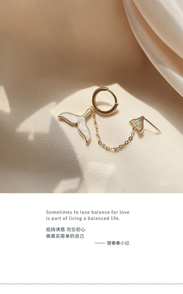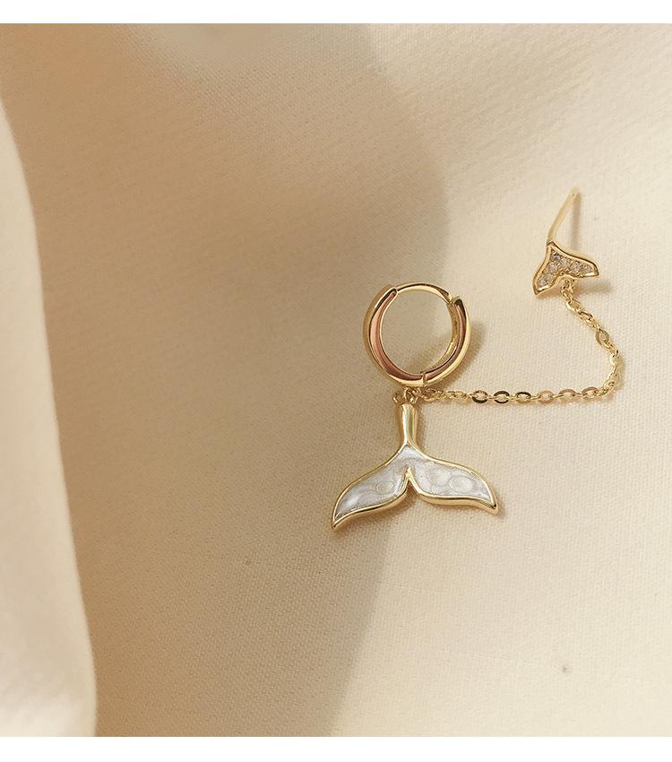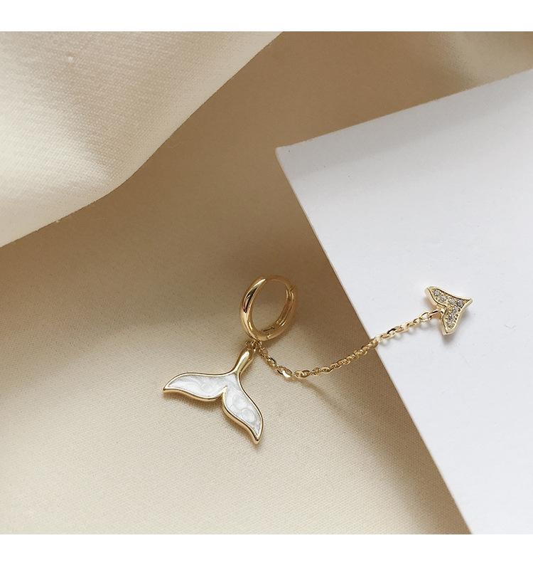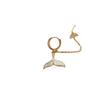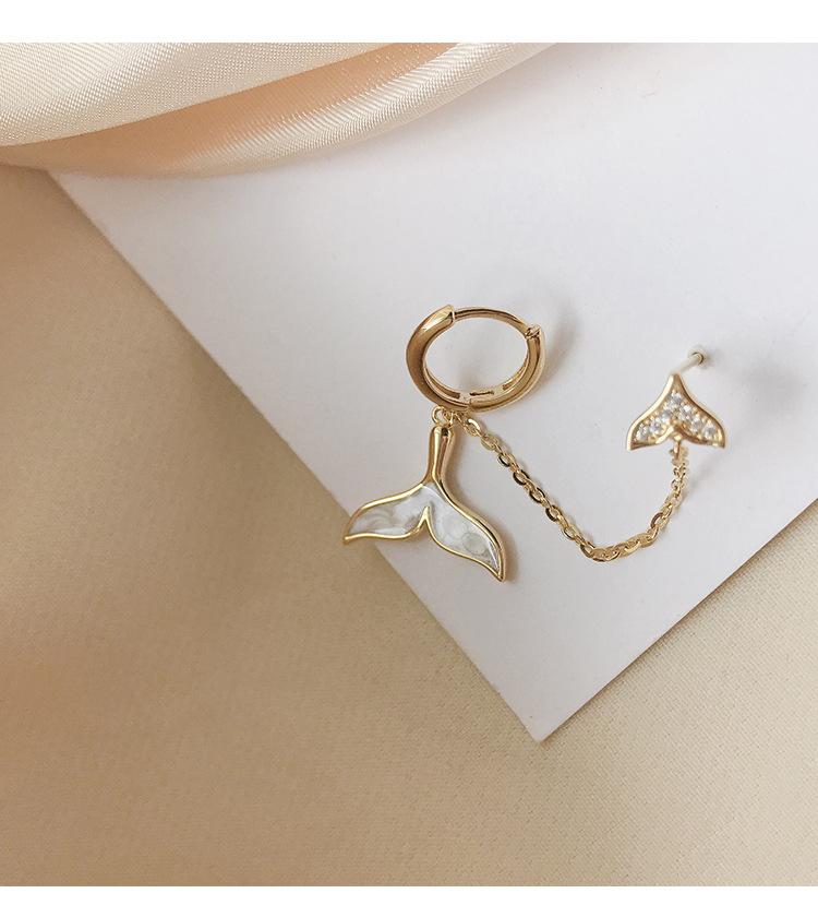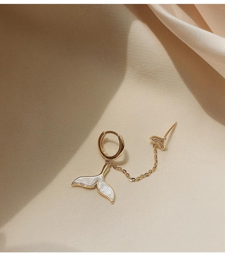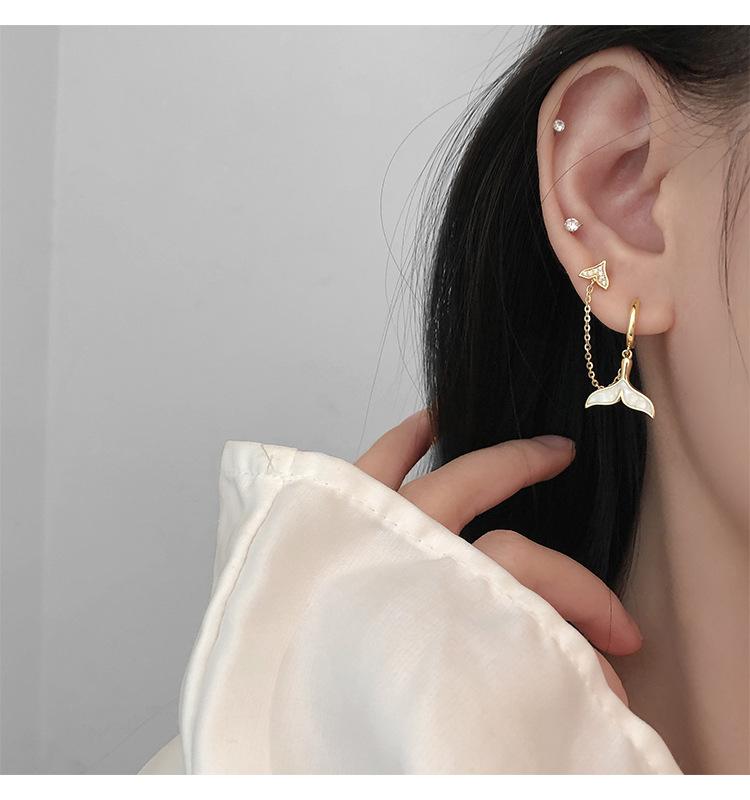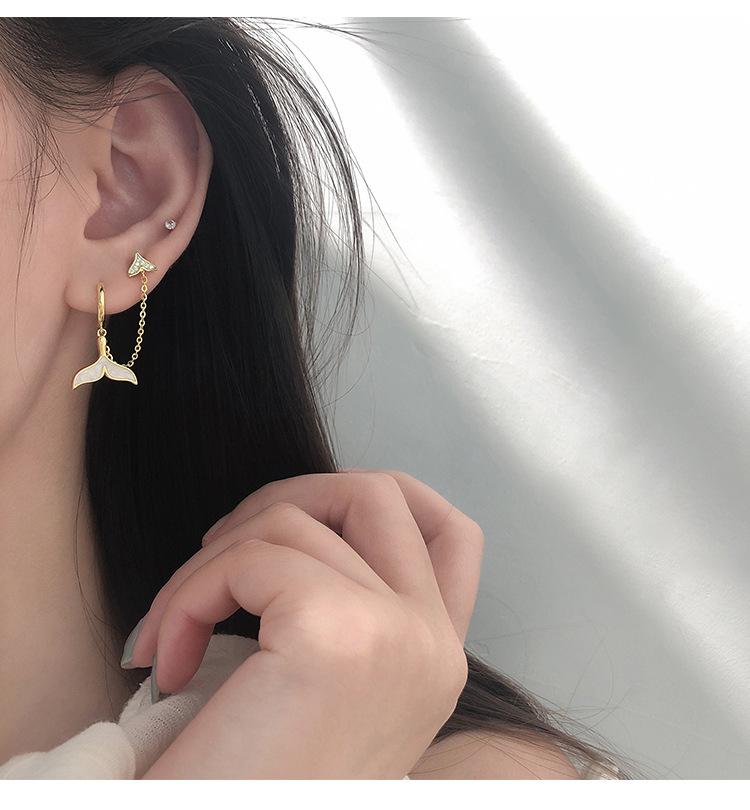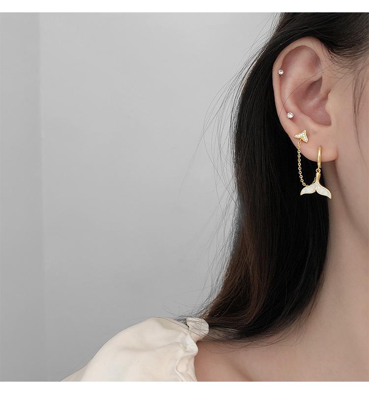 Pendientes con hebilla de cola de pez y concha, diseño sencillo que combina con todo, temperamento con doble agujero para las orejas, pendientes femeninos con cadena para las orejas.